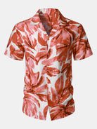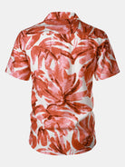 Men's Red Tropical Leaves Print Pocket Hawaiian Short Sleeve Shirt