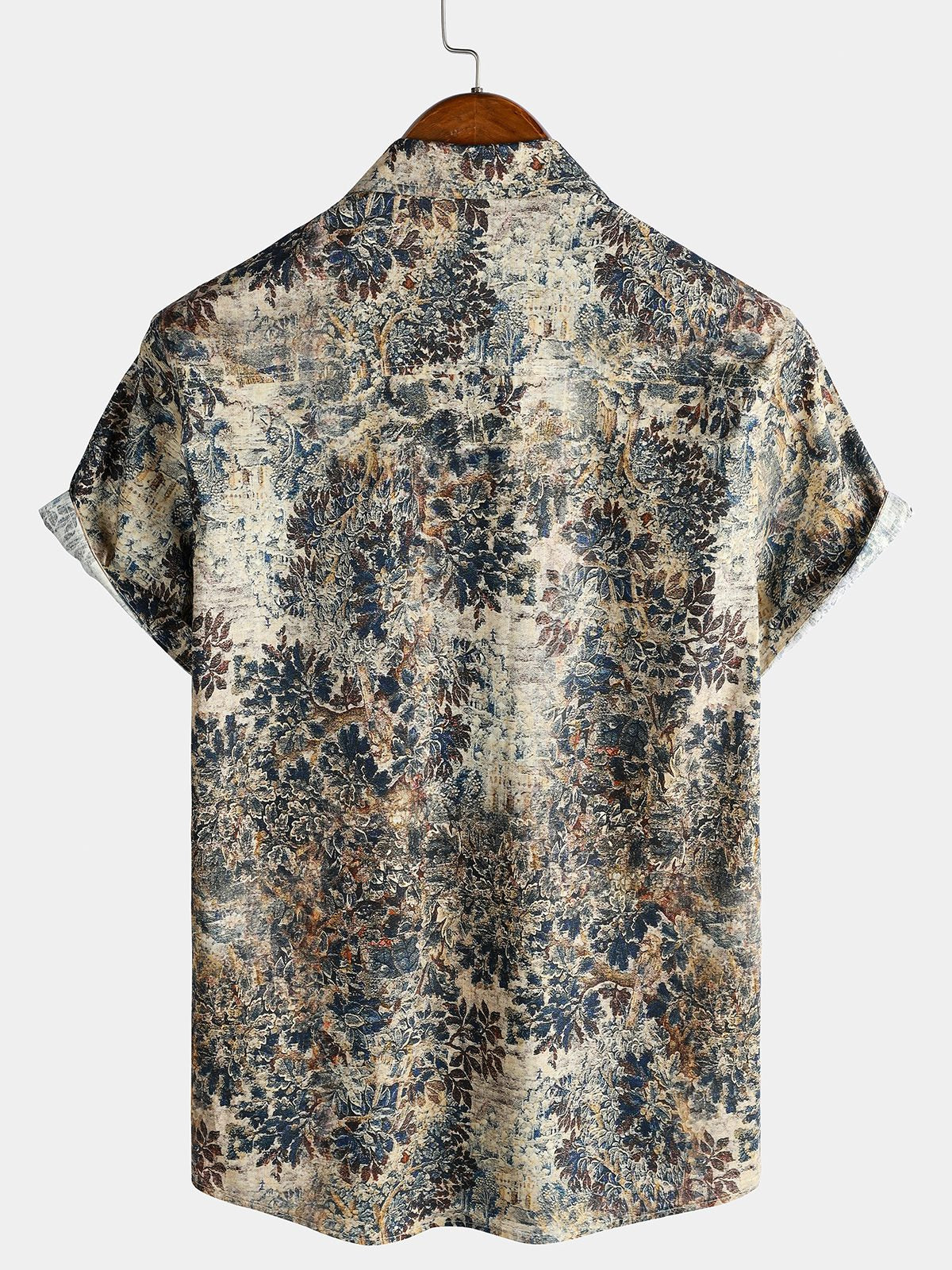 Men's Retro Short Sleeve Breathable Cotton Vacation Shirt