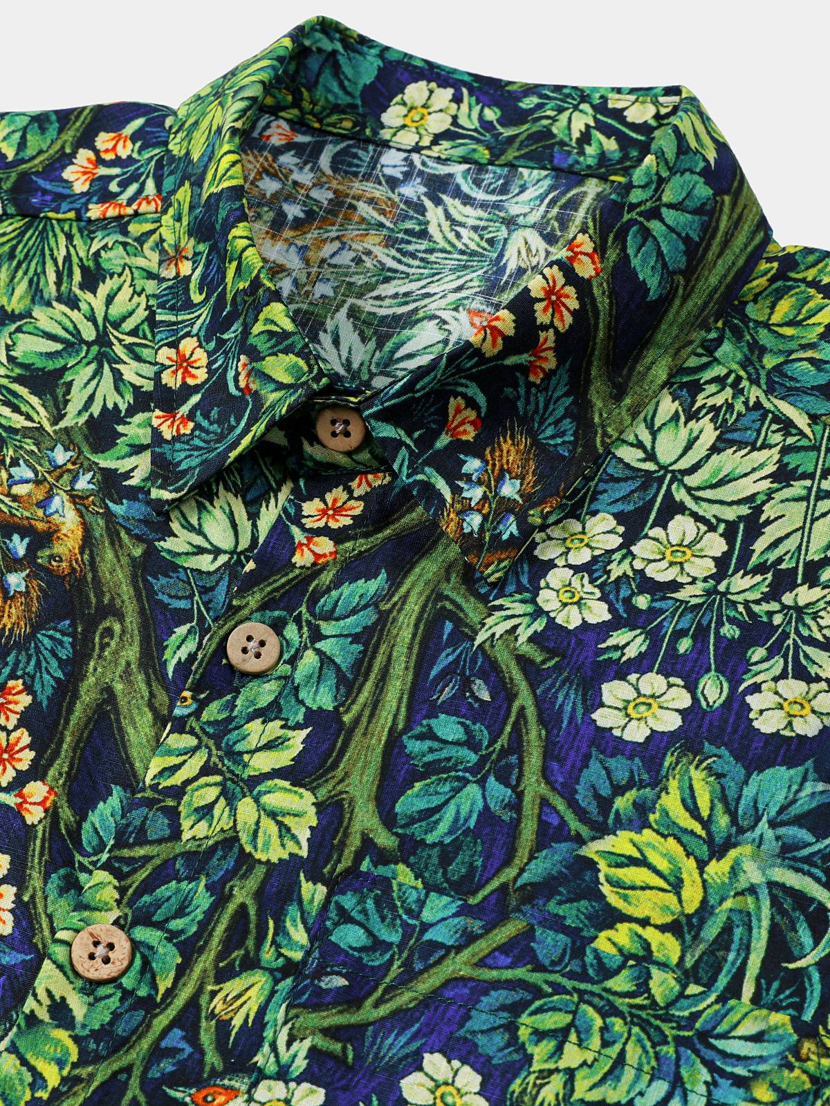 Men's Tropical Green Botanical Cotton Hawaiian Shirt