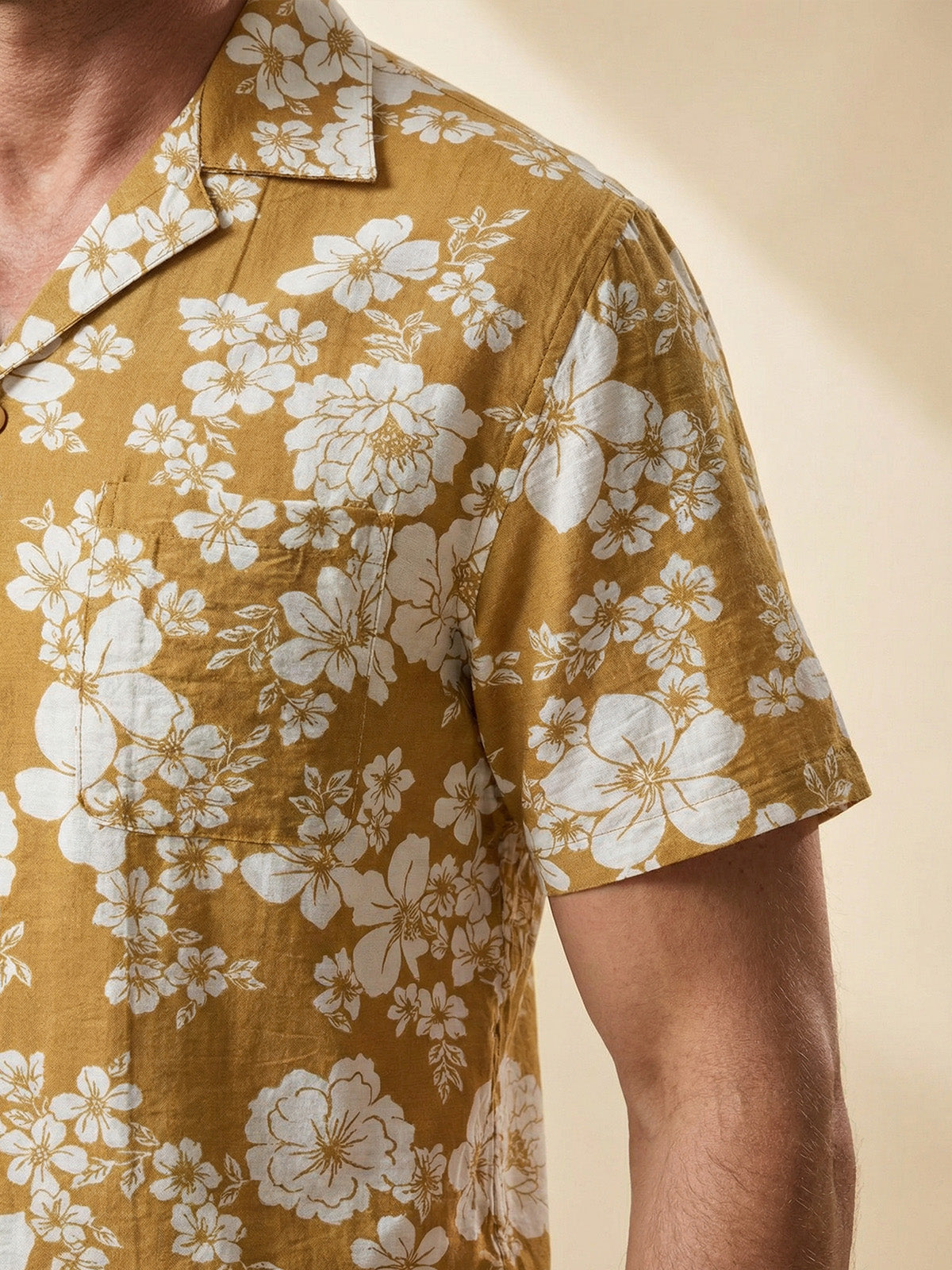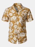 Men's Yellow Floral Pocket Resort Short Sleeve Shirt