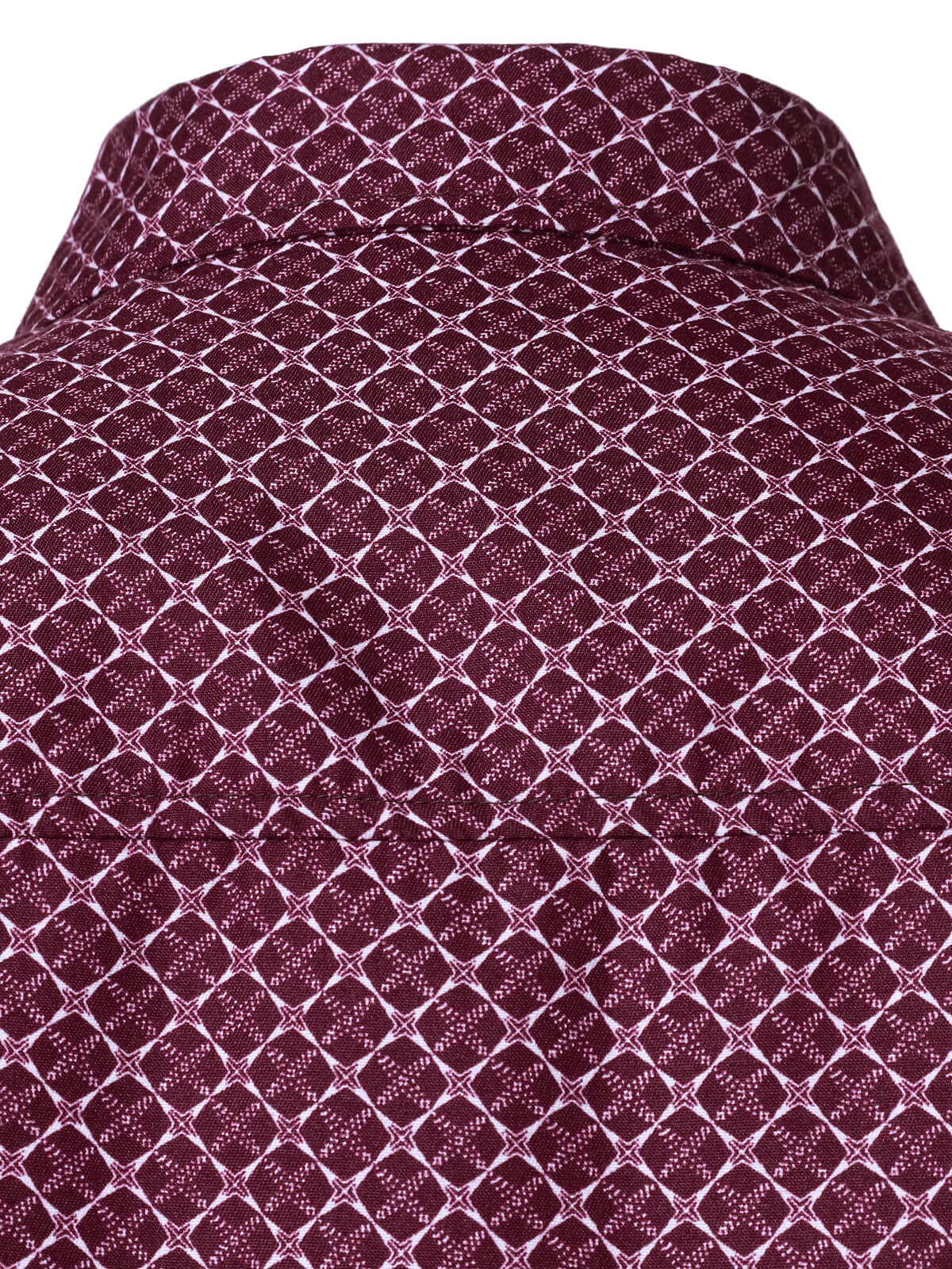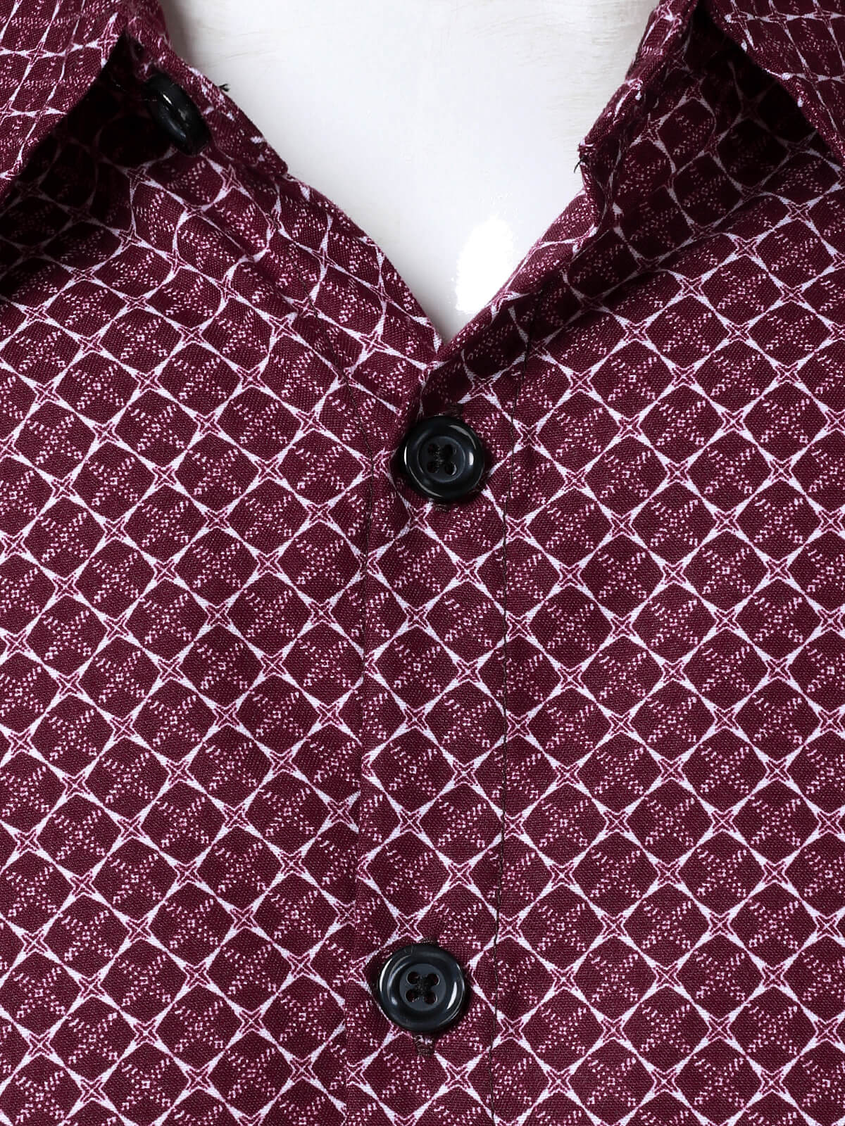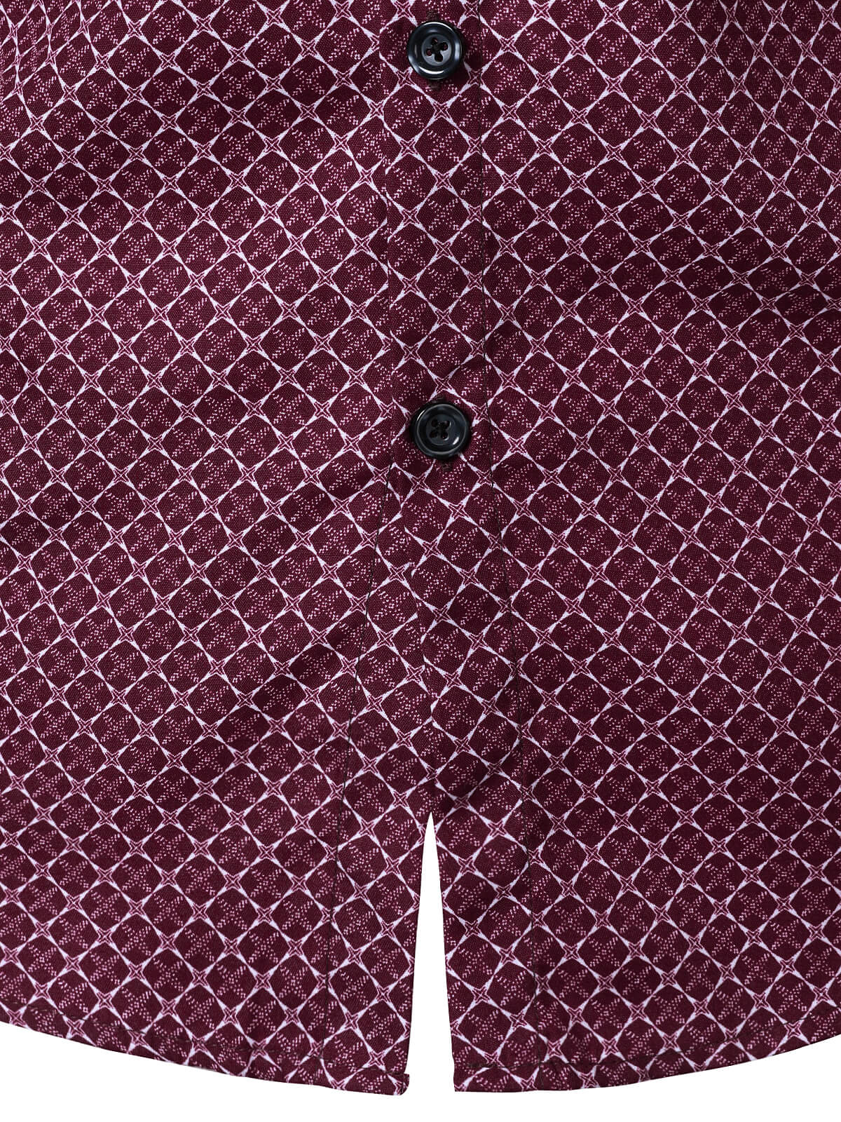 Men's Geometric Print Red Long Sleeve Dress Shirt