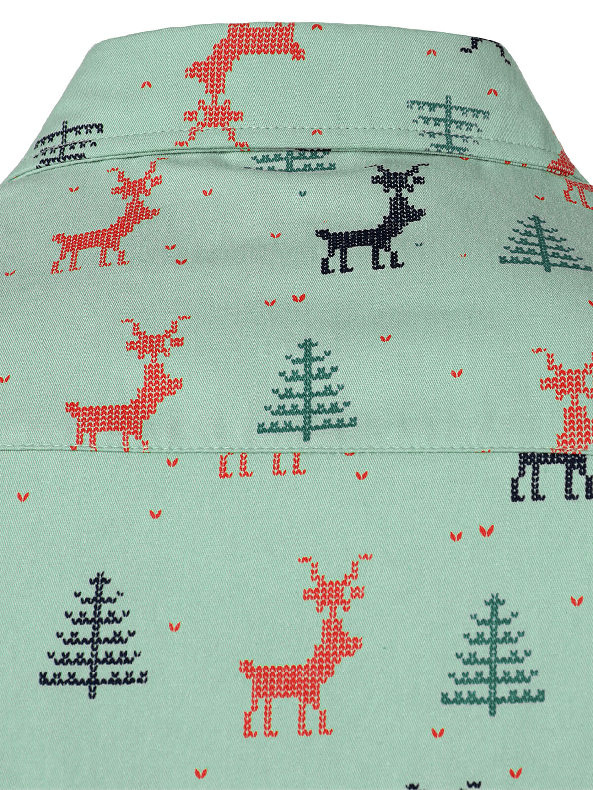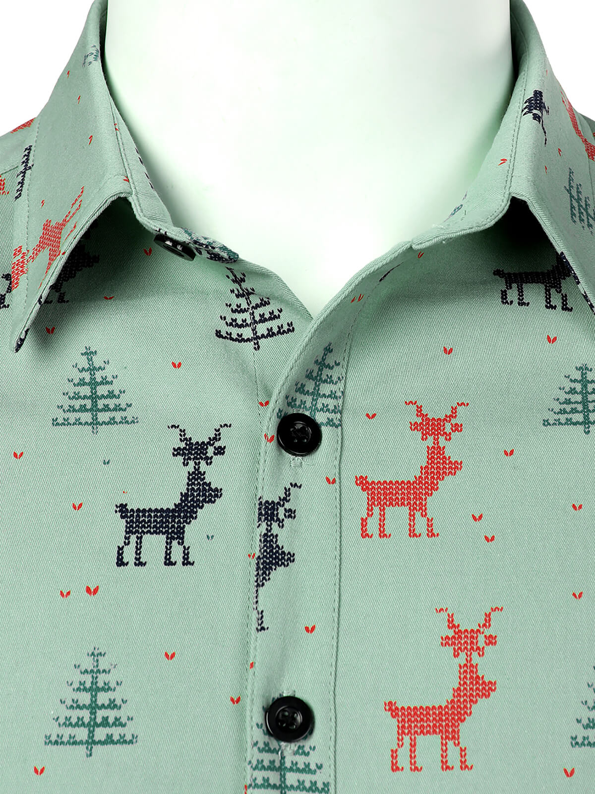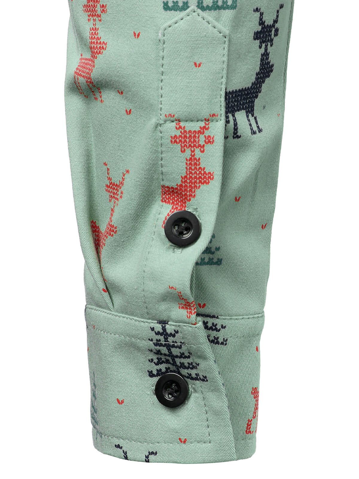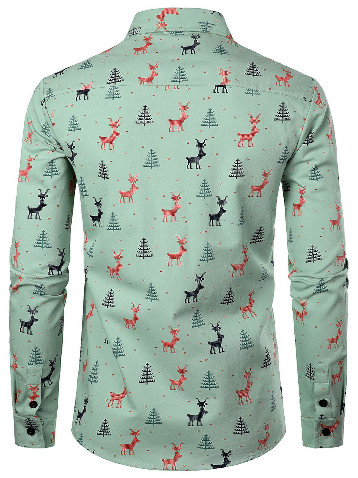 Men's Deer and Trees Casual Print Button Up Long Sleeve Shirt