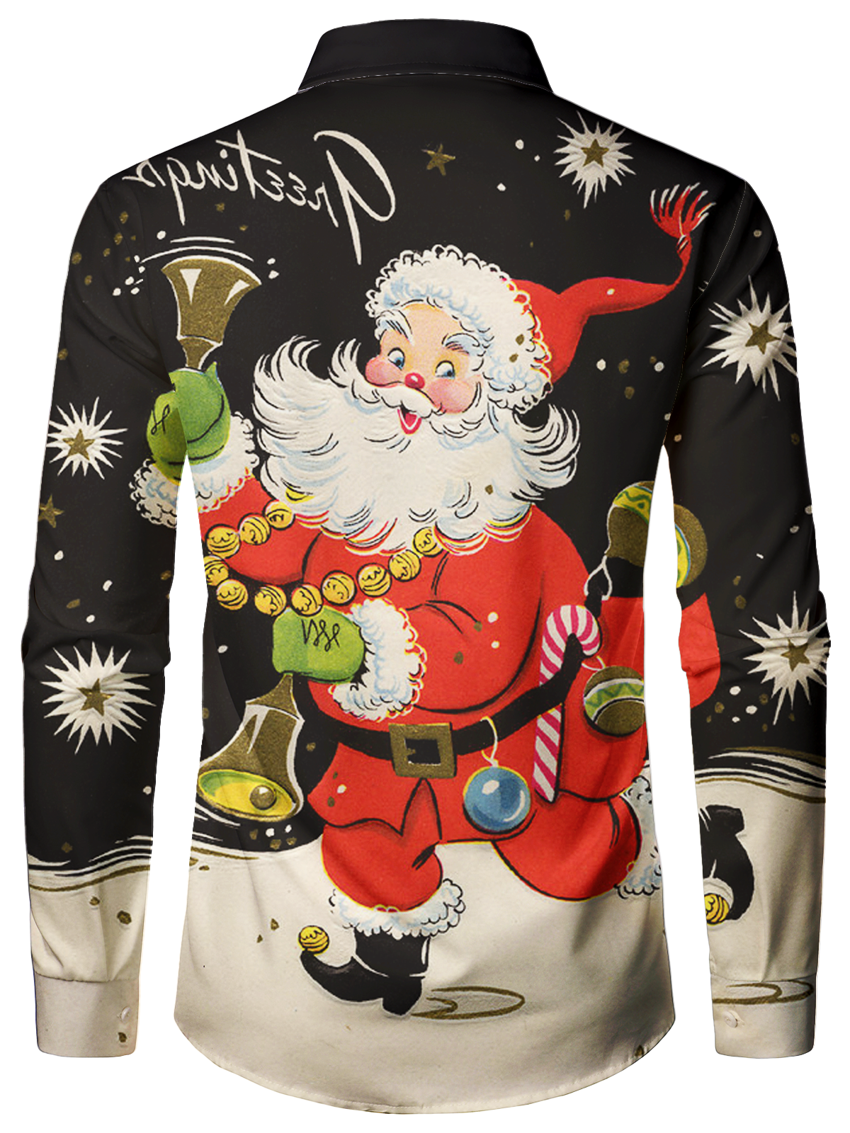 Men's Vintage Funny Christmas Santa Black Holiday Party Long Sleeve Shirt