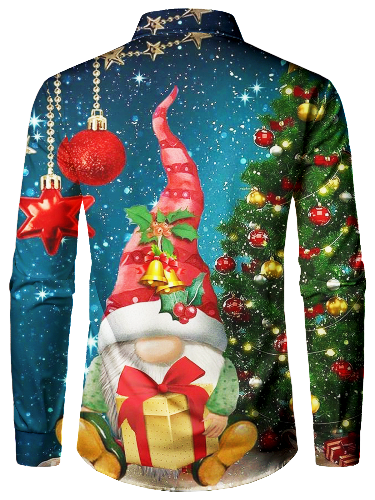 Men's Cute Gnome And Christmas Tree Button Up Long Sleeve Shirt