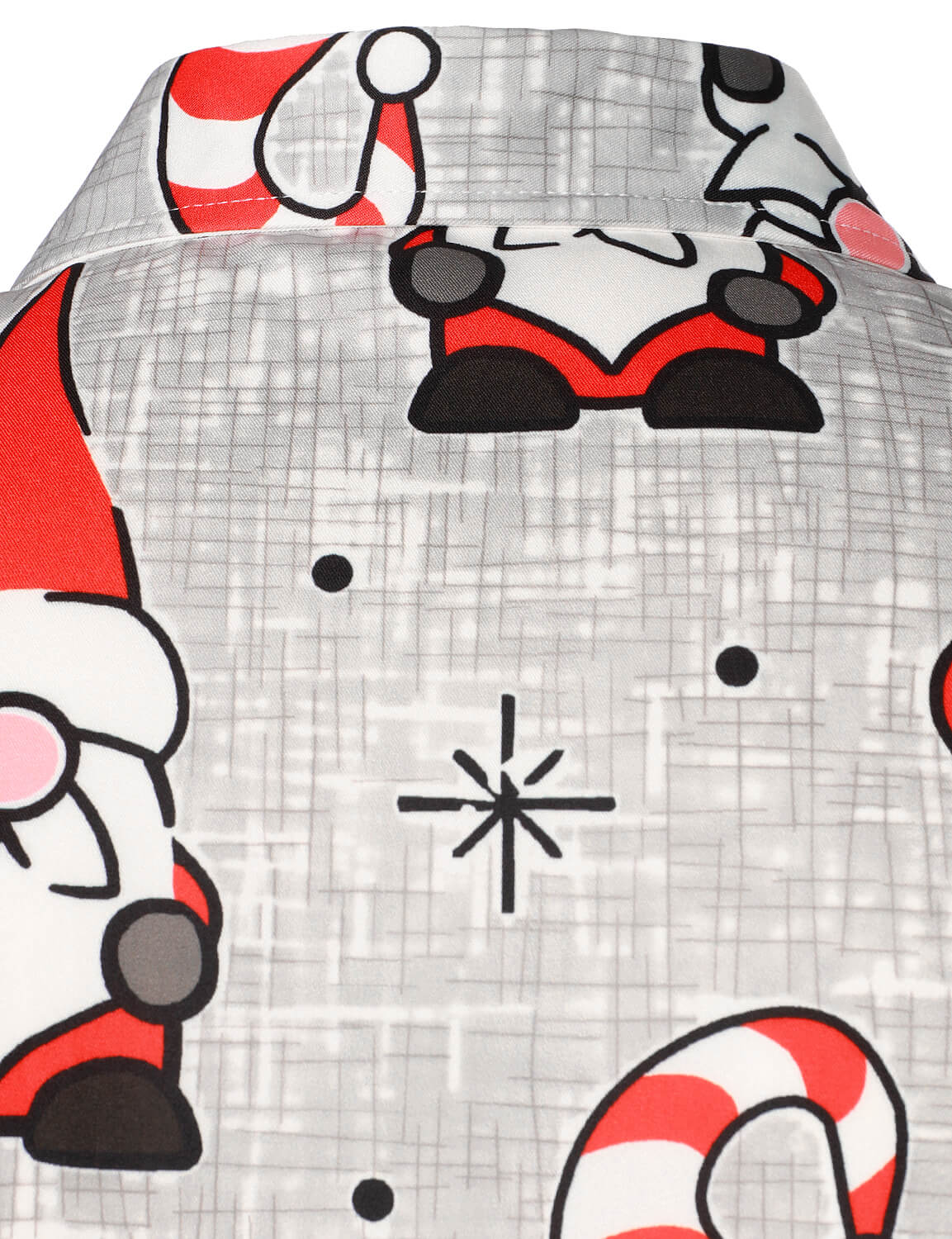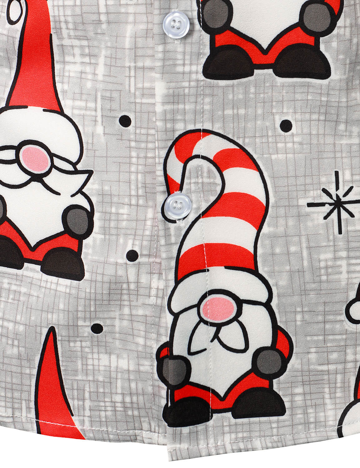 Camisa de manga larga con botones divertidos con estampado de gnomo lindo navideño para hombre