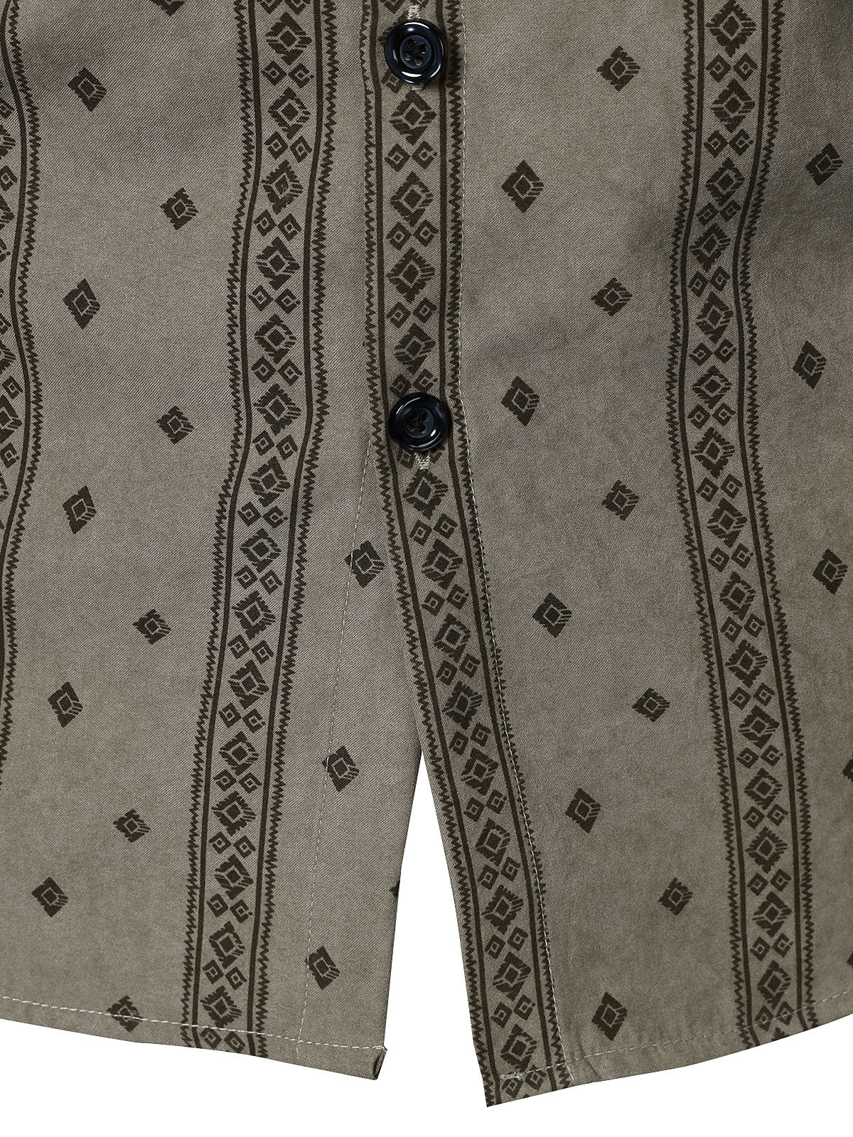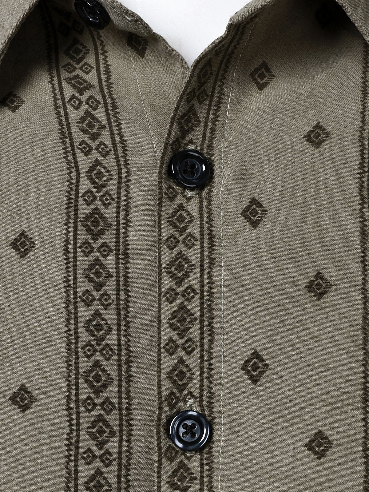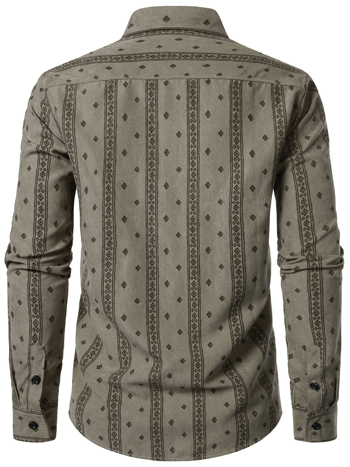 Men's Retro Striped Print Button Up Long Sleeve Shirt