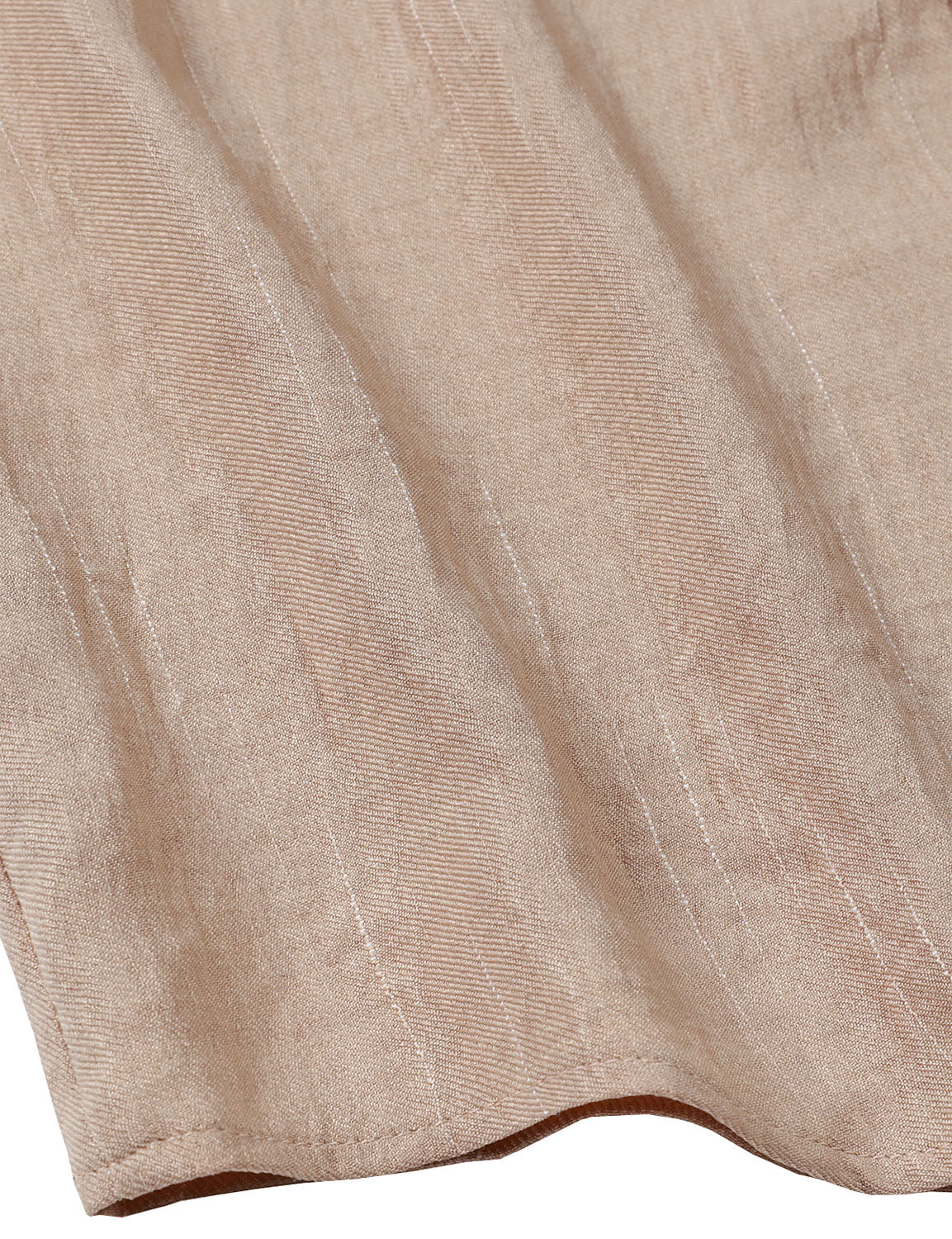 Men's Khaki Floral Jacquard Shiny Satin Long Sleeve Dress Shirt