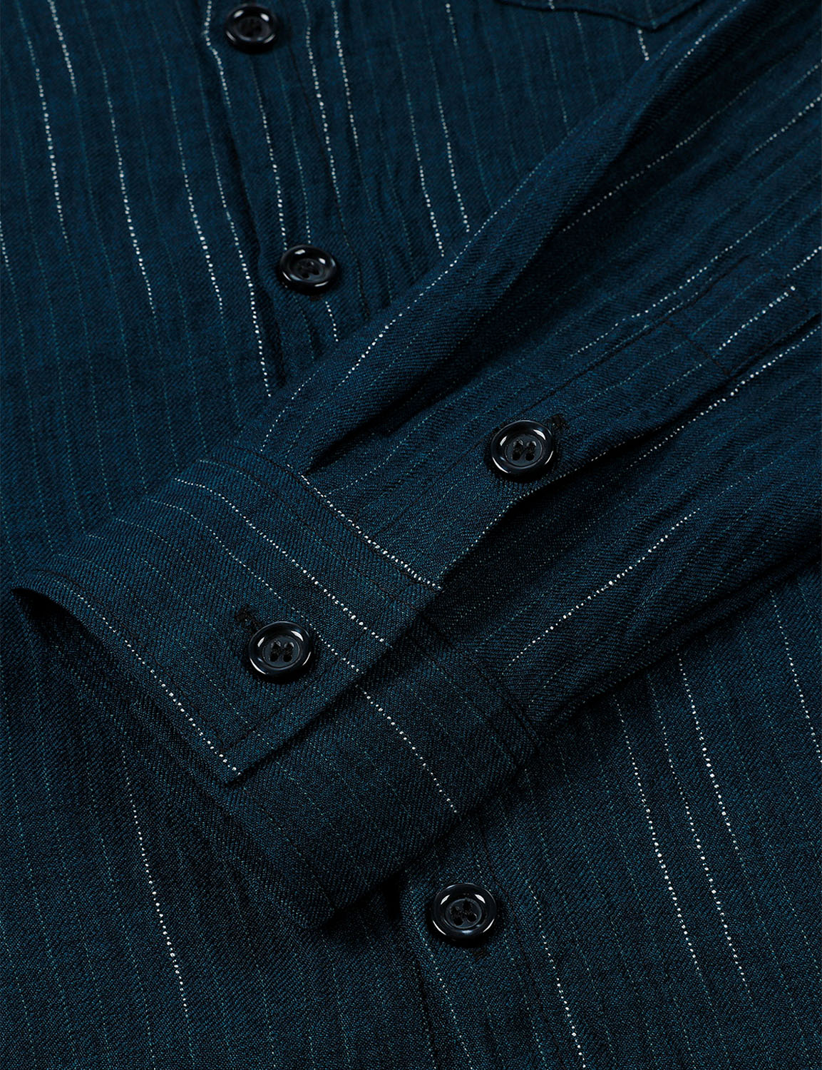Men's Casual Button Navy Blue Long Sleeve Shirt