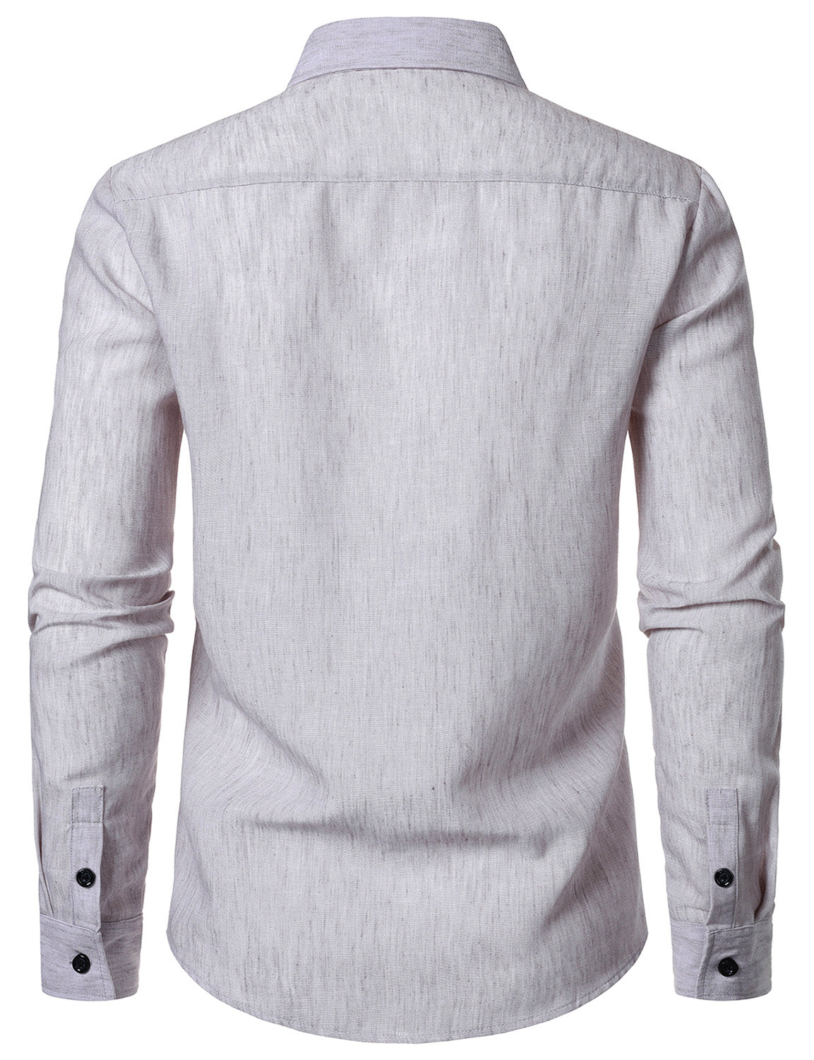 Men's Solid Color Cotton Casual Henry Collar Pocket Long Sleeve T-Shirt