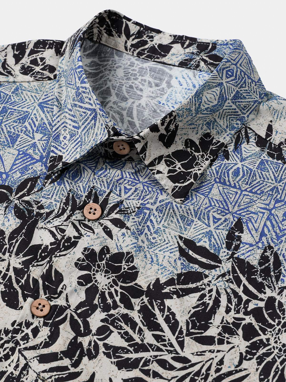 Men's Short Sleeve Cotton Breathable Retro Bohemian Botanical Print Island Holiday Shirt