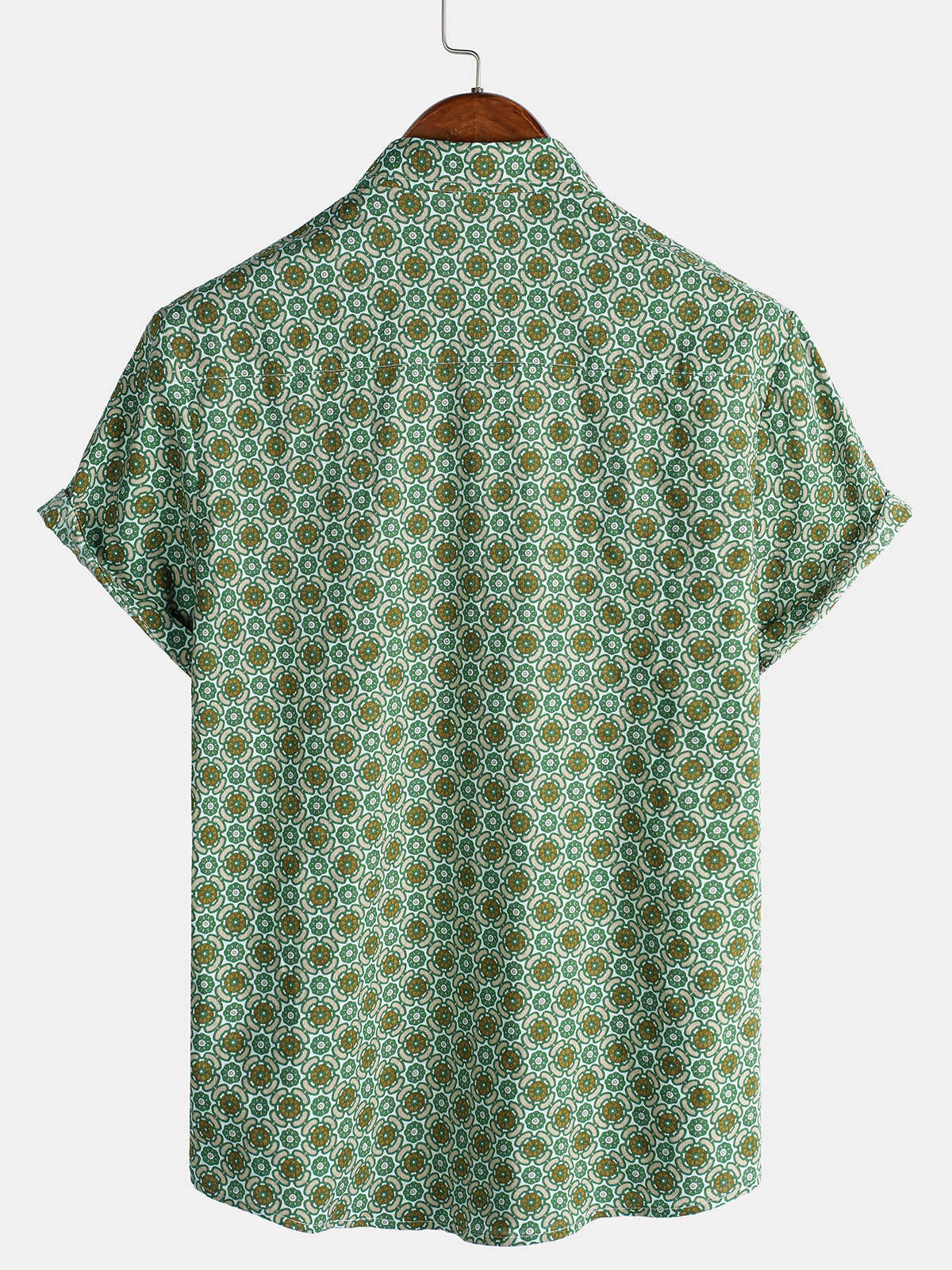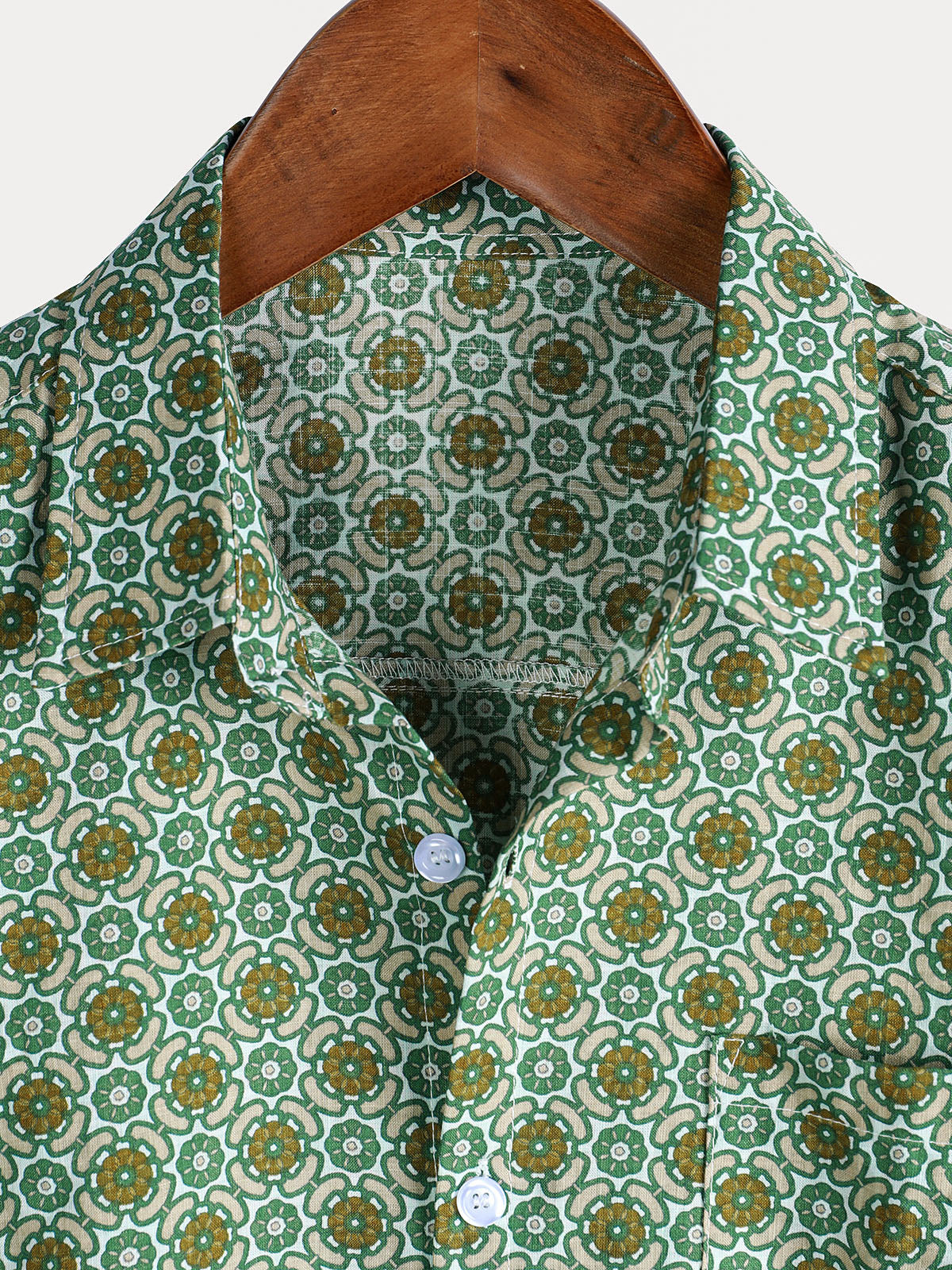 Men's Casual Green Floral Print Lightweight Cotton Short Sleeve Shirt