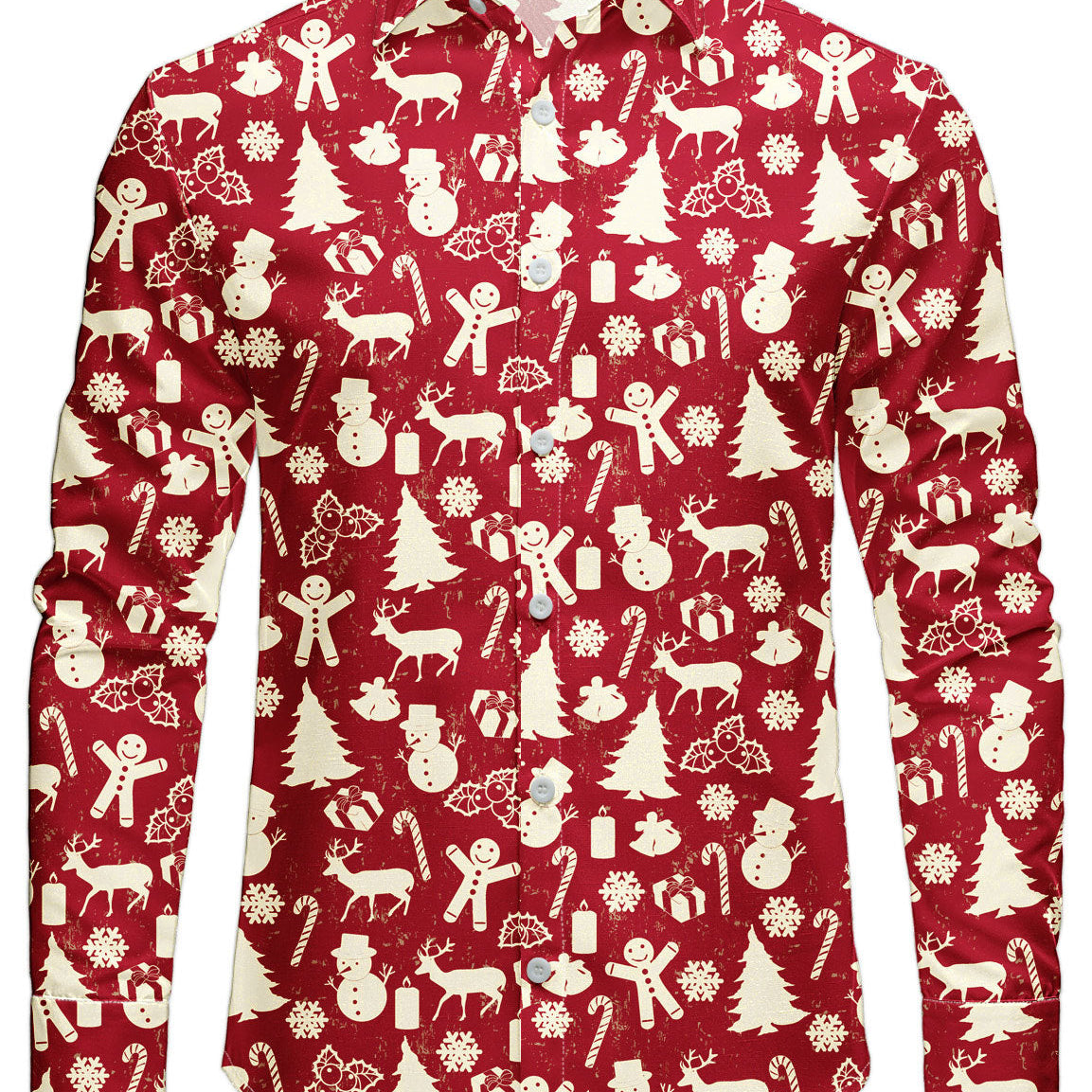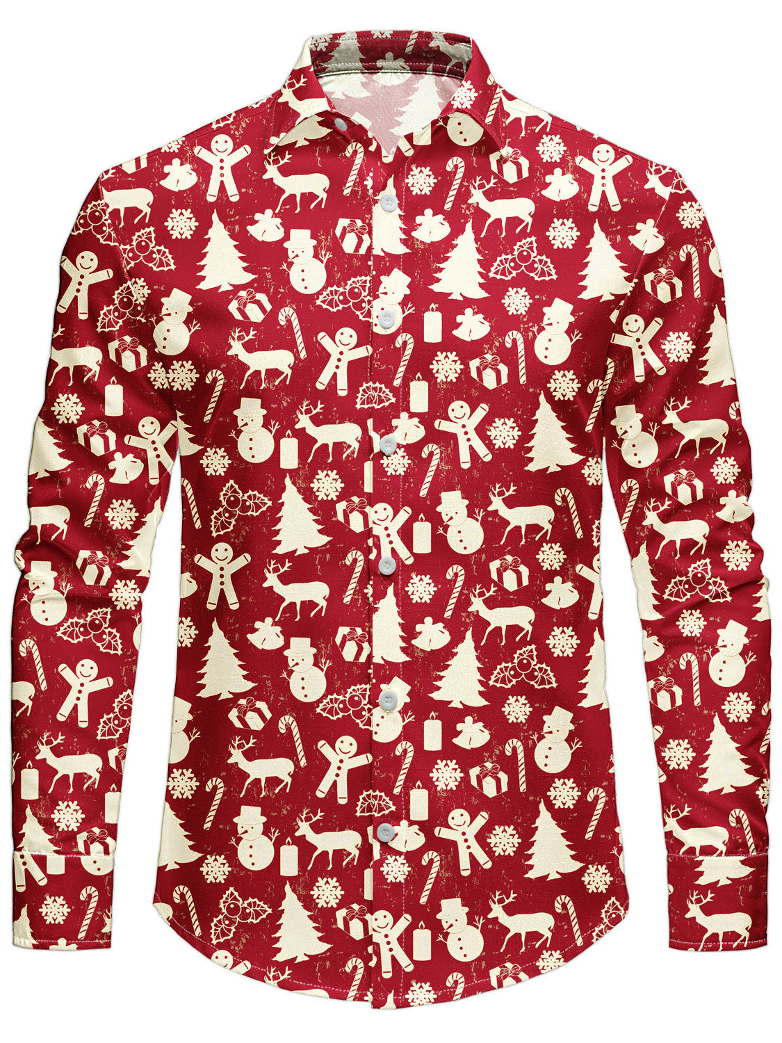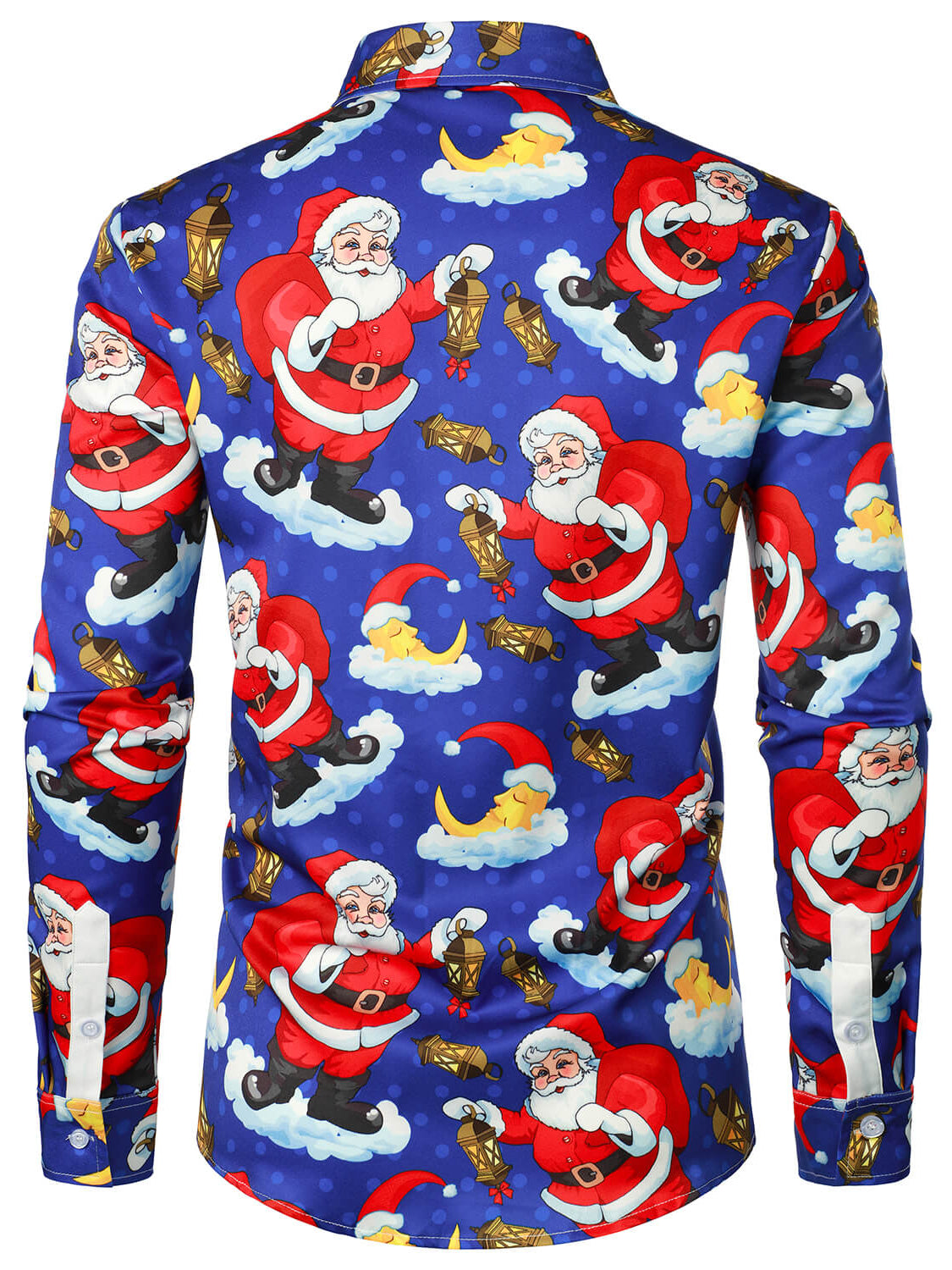 Men's Santa Claus Christmas Gifts Button UP Party Funny Holiday Long Sleeve Shirt