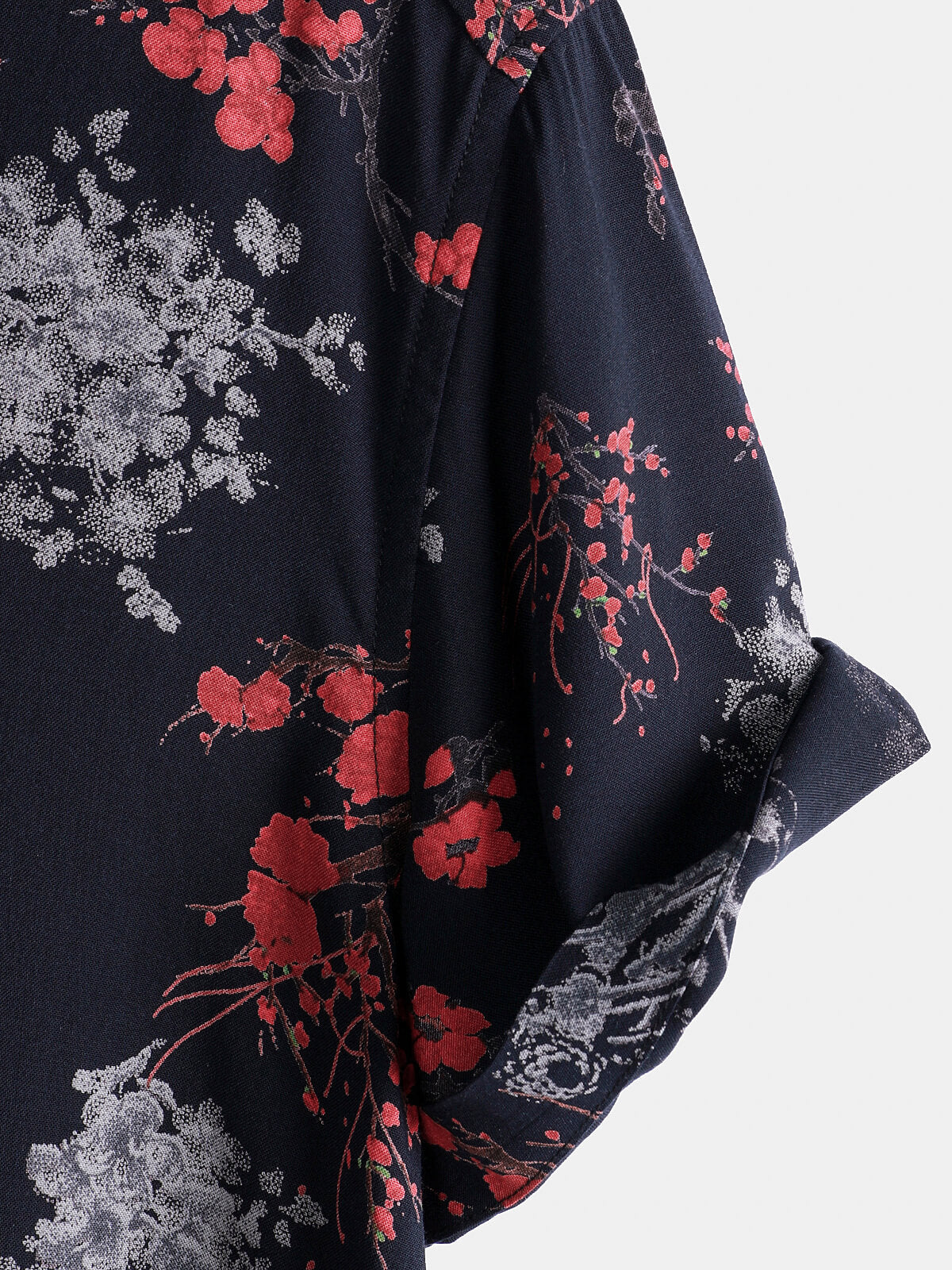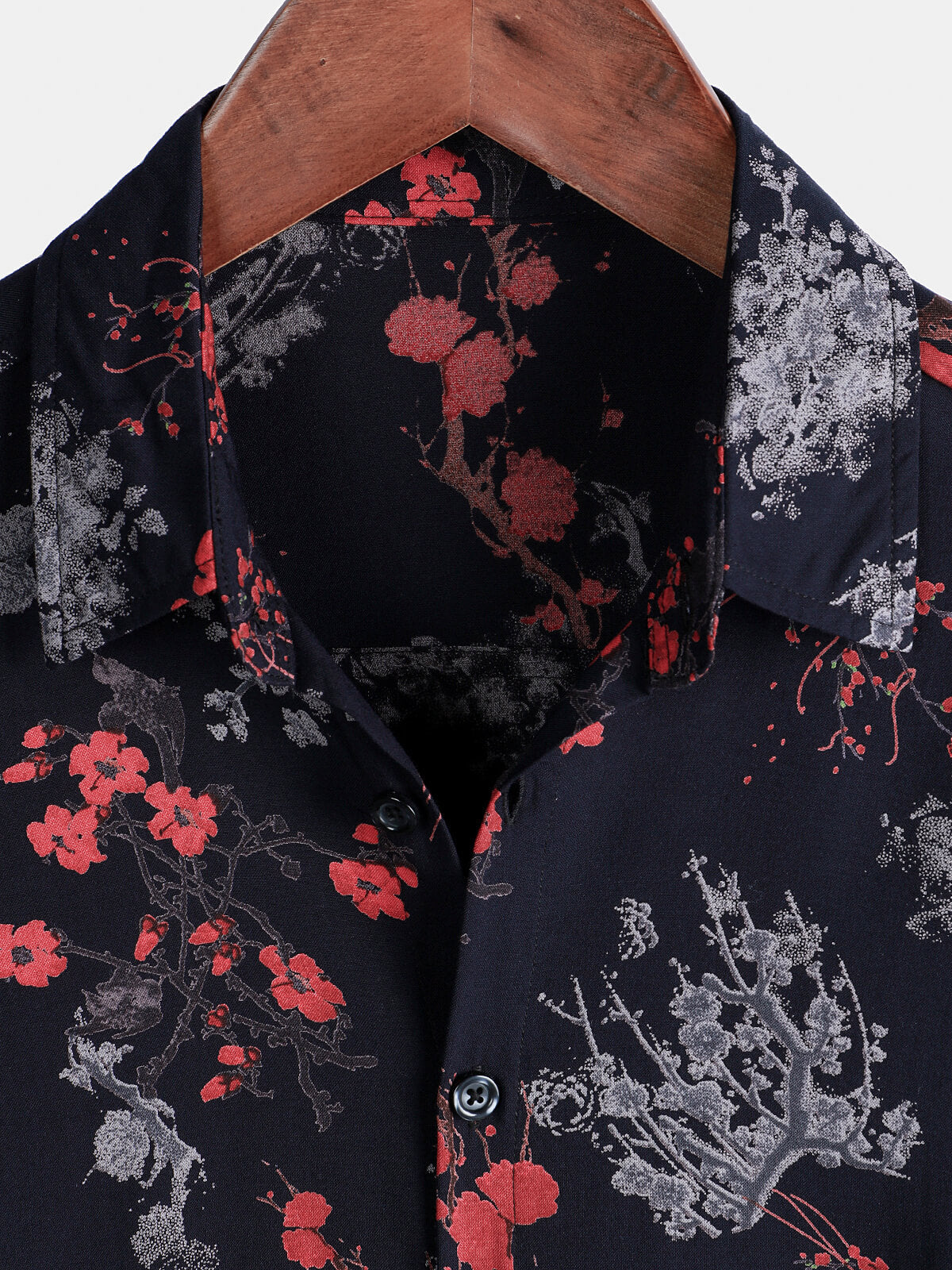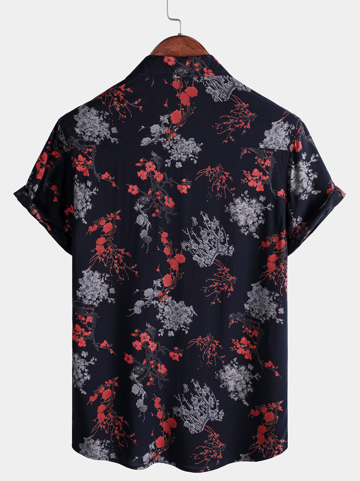 Men's Elegant Floral Rayon Casual Short Sleeve Shirt