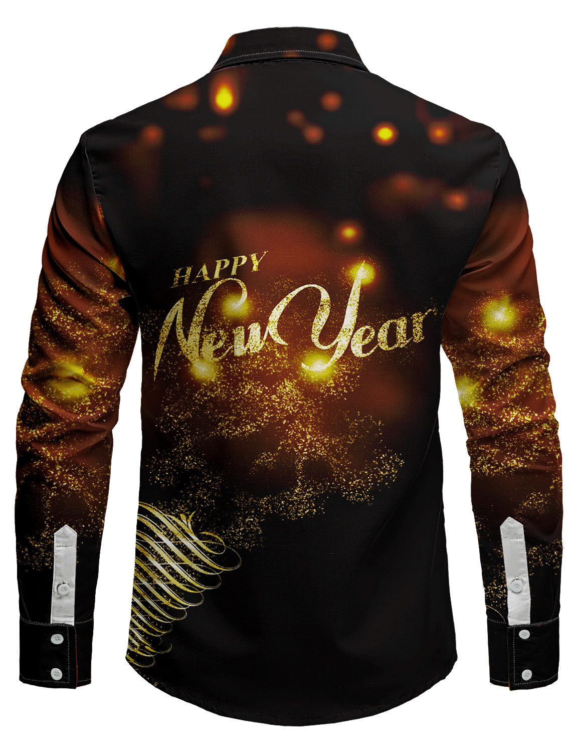 Men's Holiday Funny Happy New Year Eve Party Button Up Long Sleeve Shirt