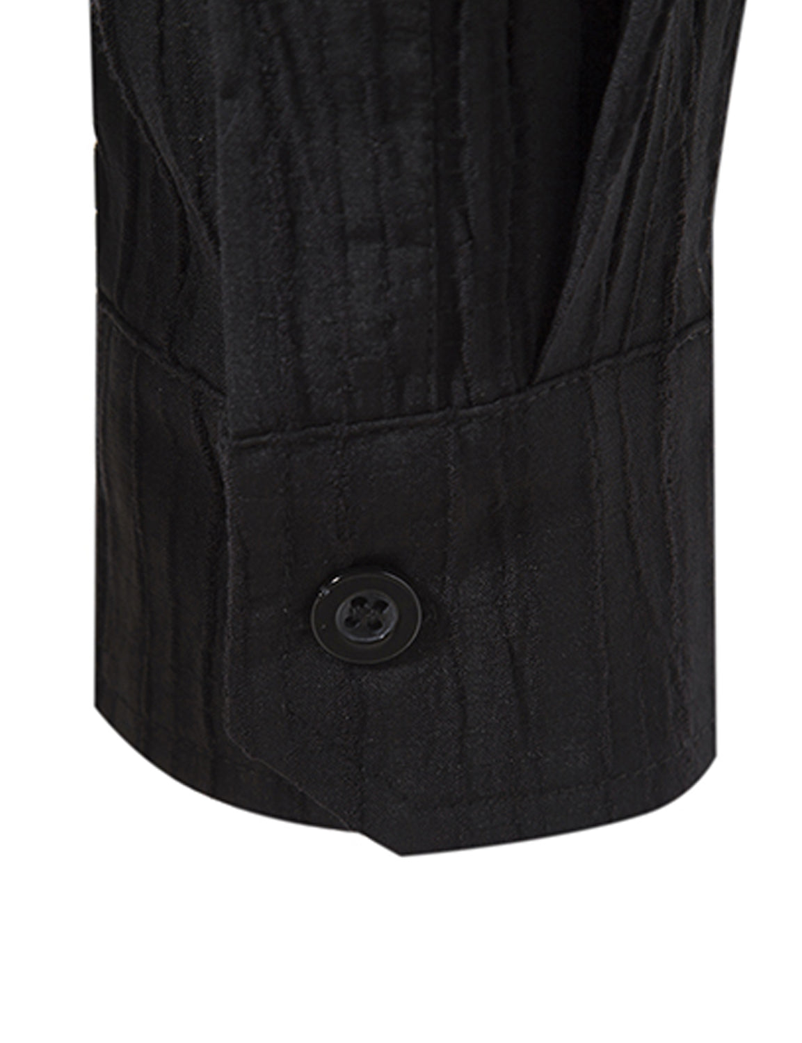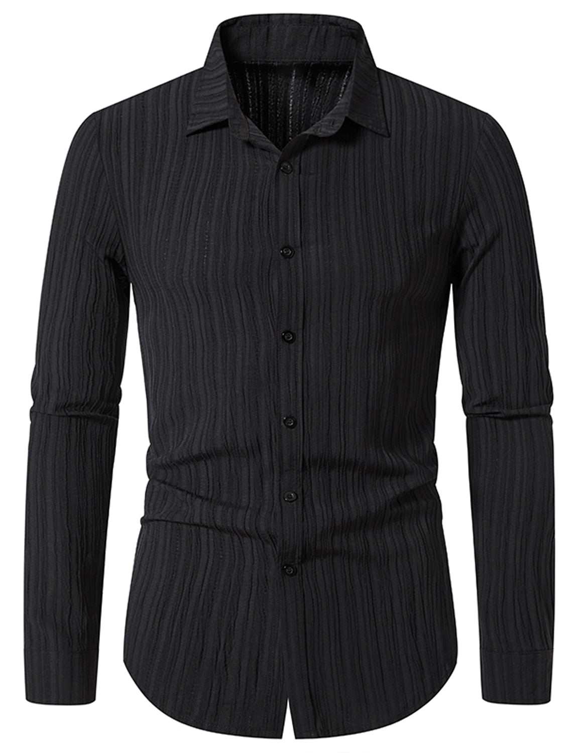 Men's Cotton Breathable Solid Color Casual Button Up Lapel Long Sleeve Shirt