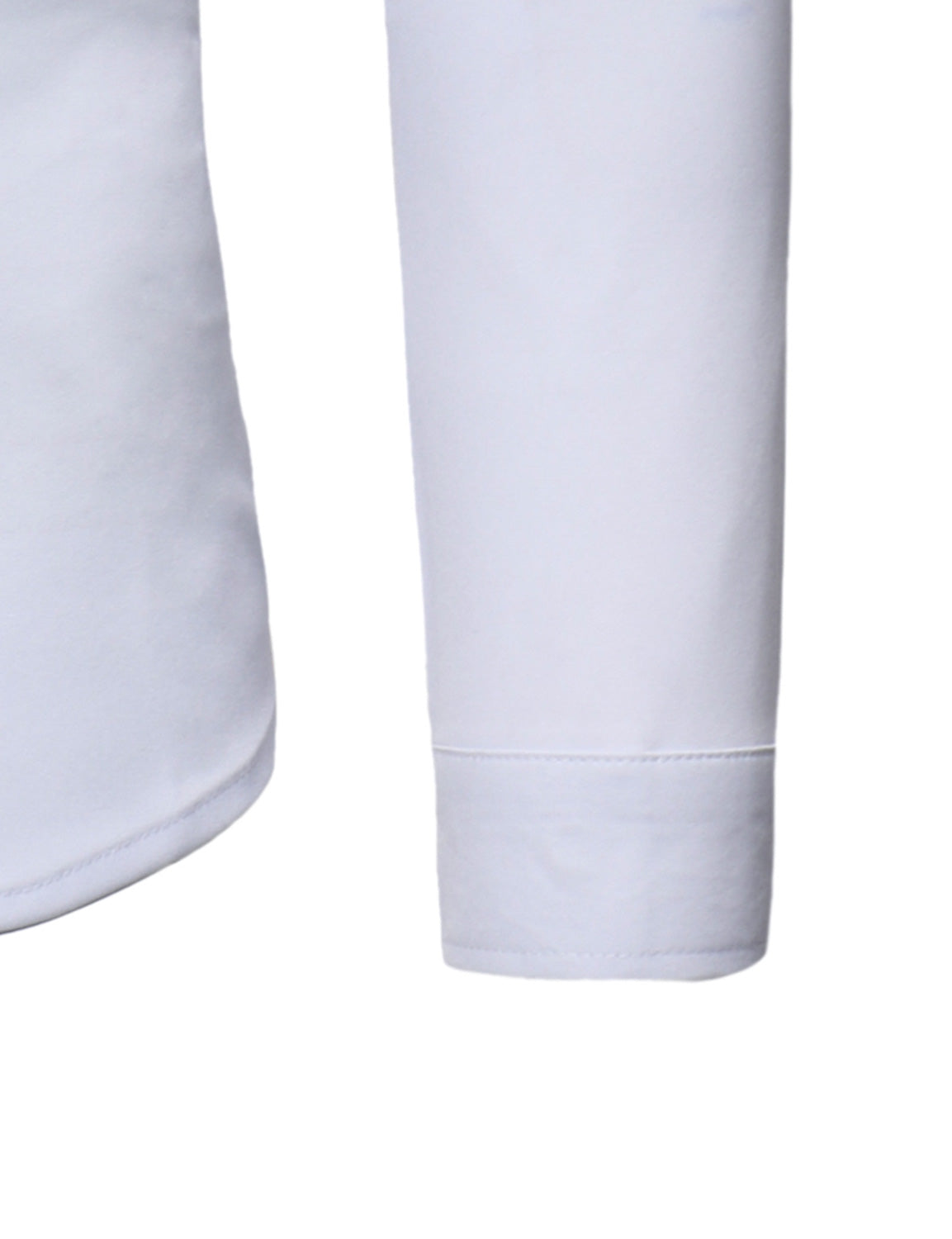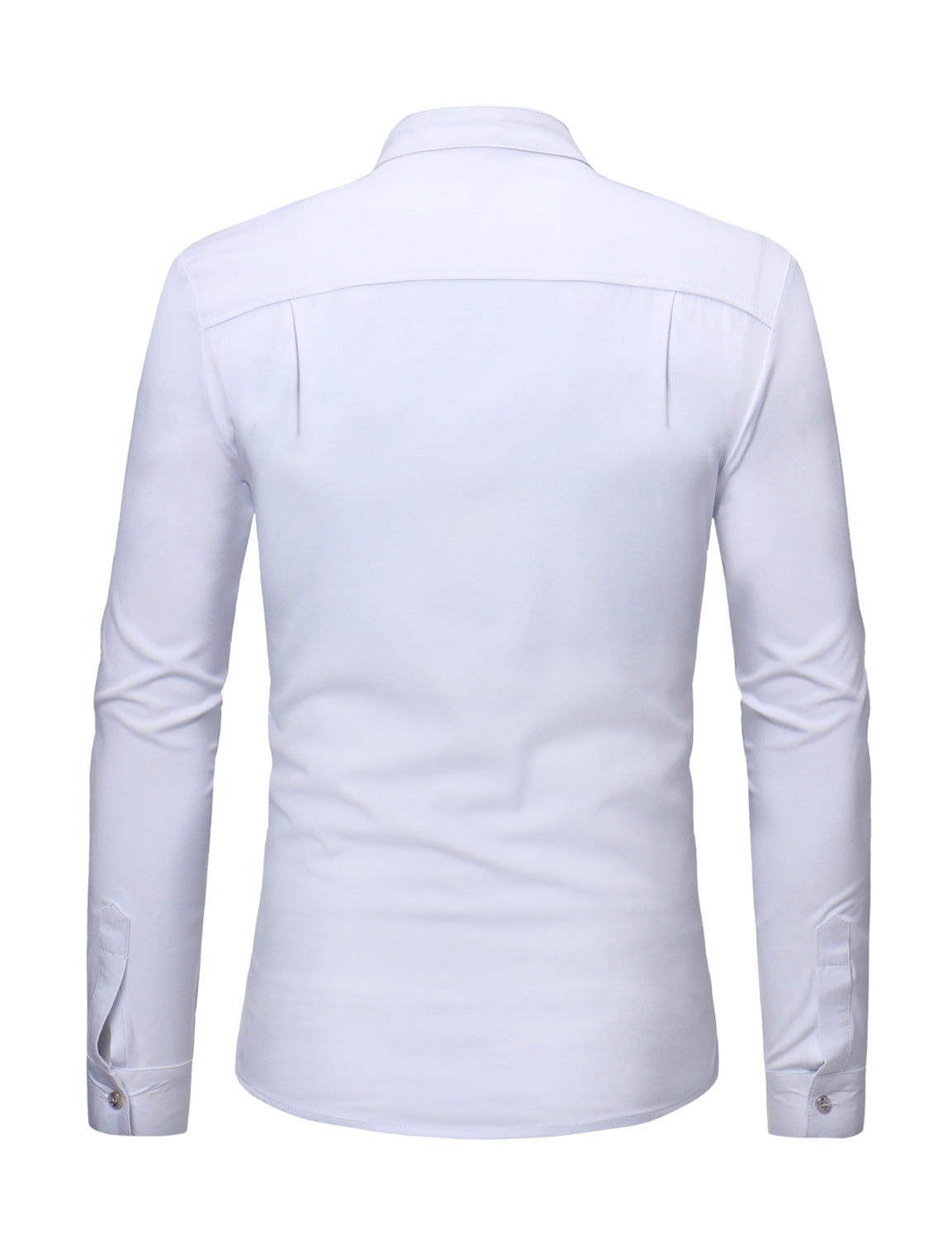 Chemise à manches longues brodée à col de couleur unie pour hommes