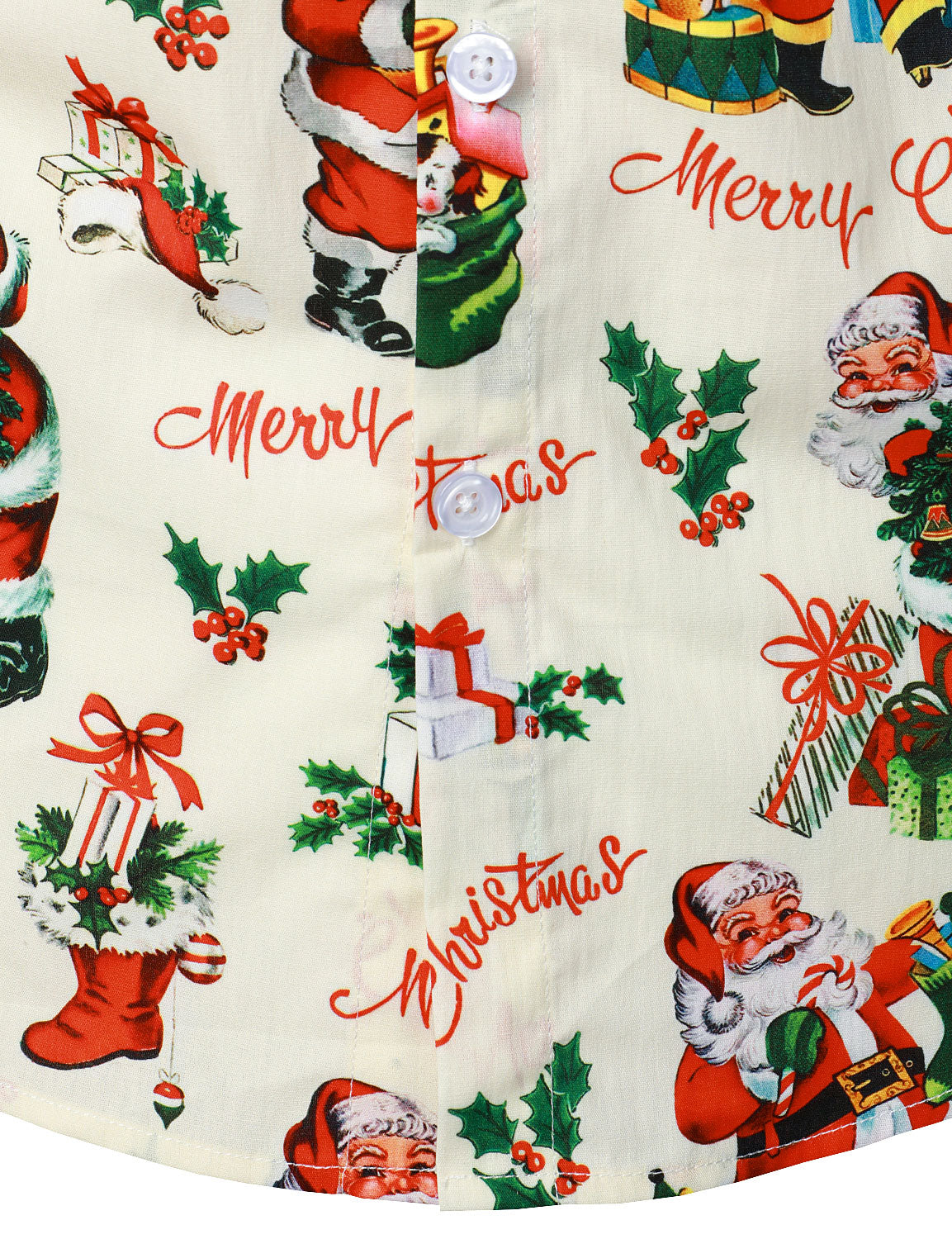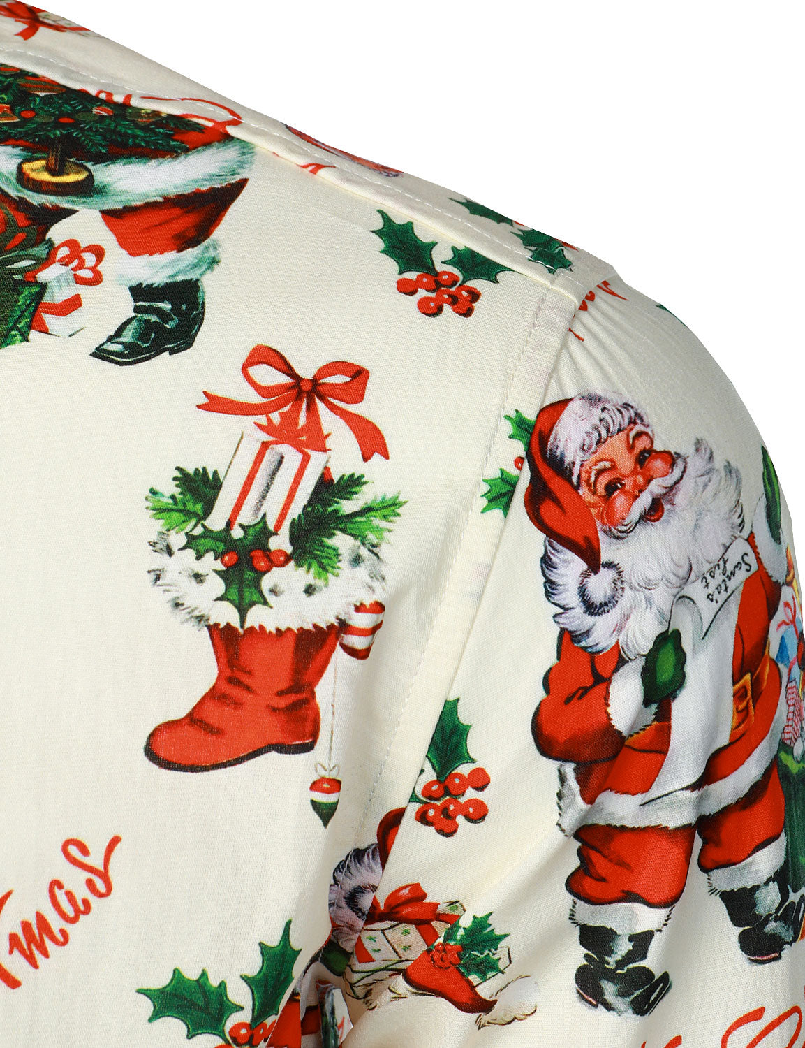Men's Santa Claus Christmas Long Sleeve Cotton Shirt