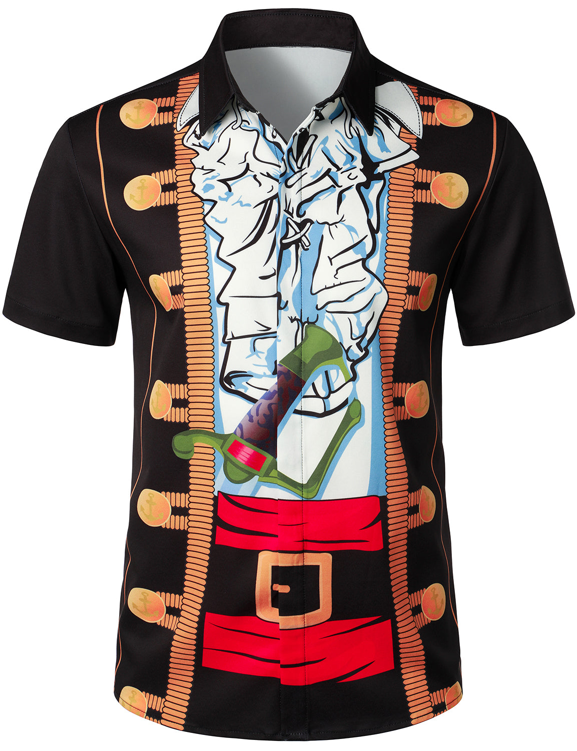 Men's Pirate Themed Party Costume Black Halloween Short Sleeve Shirt