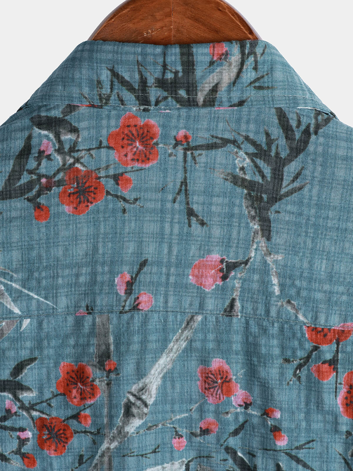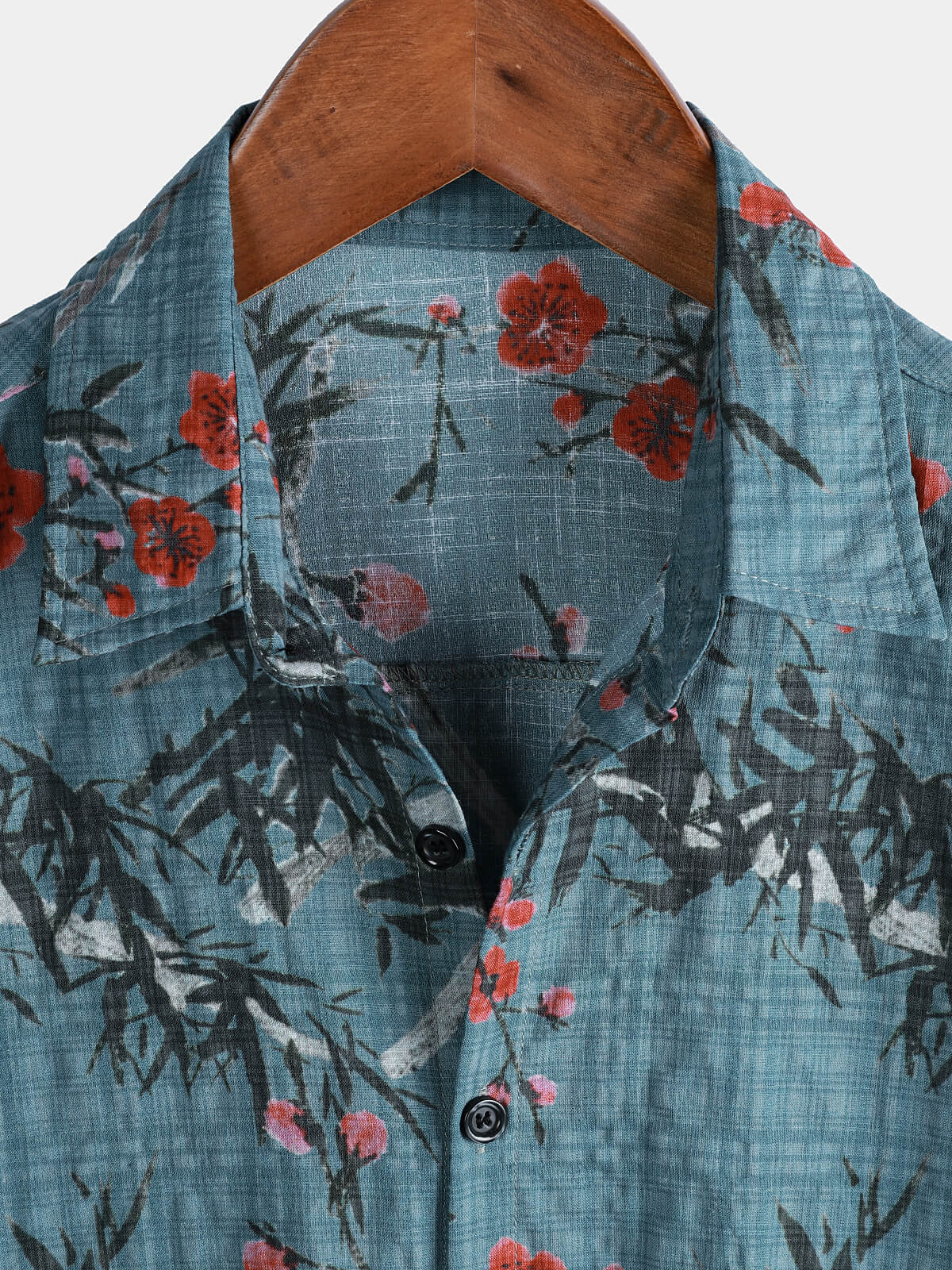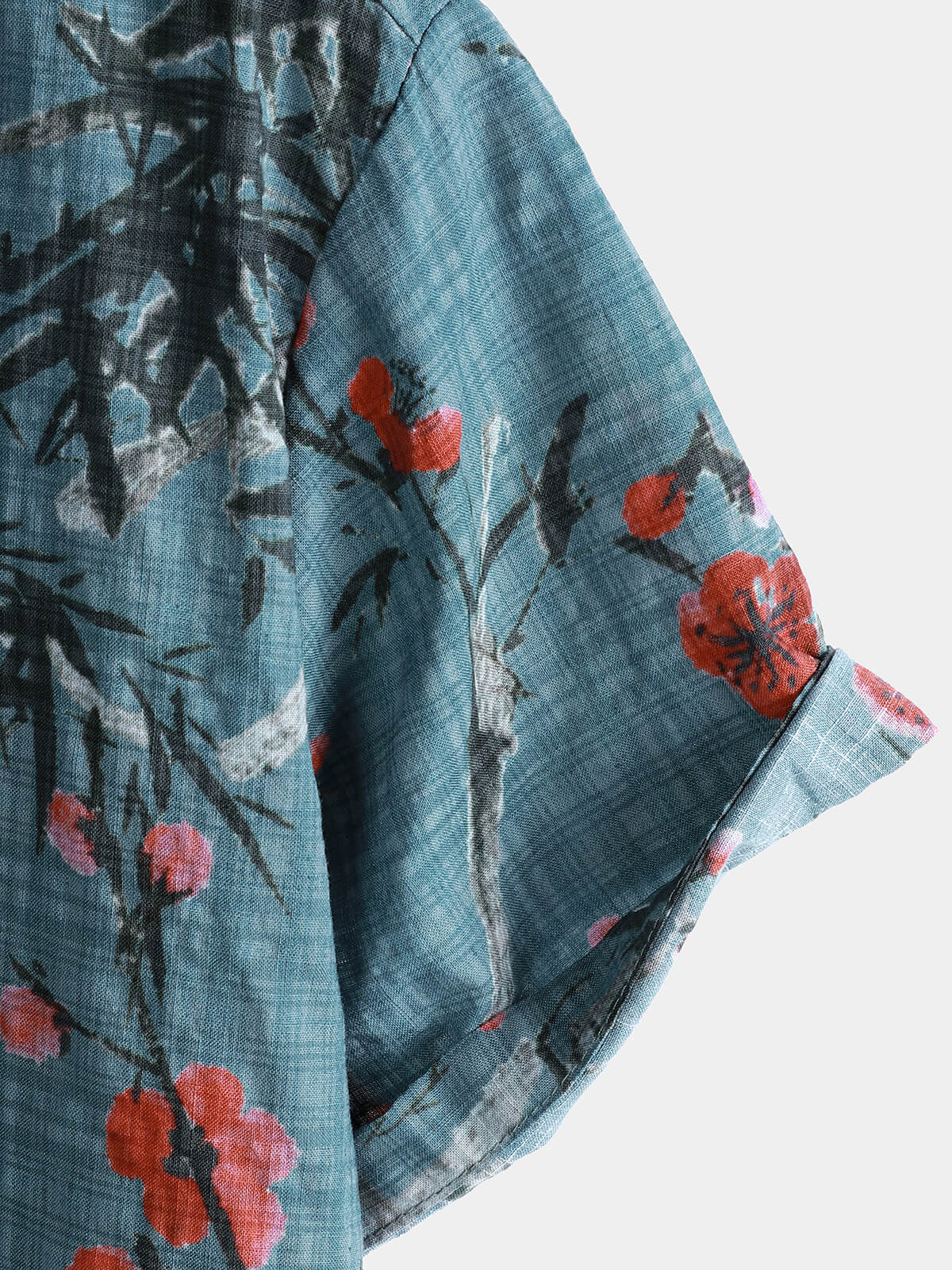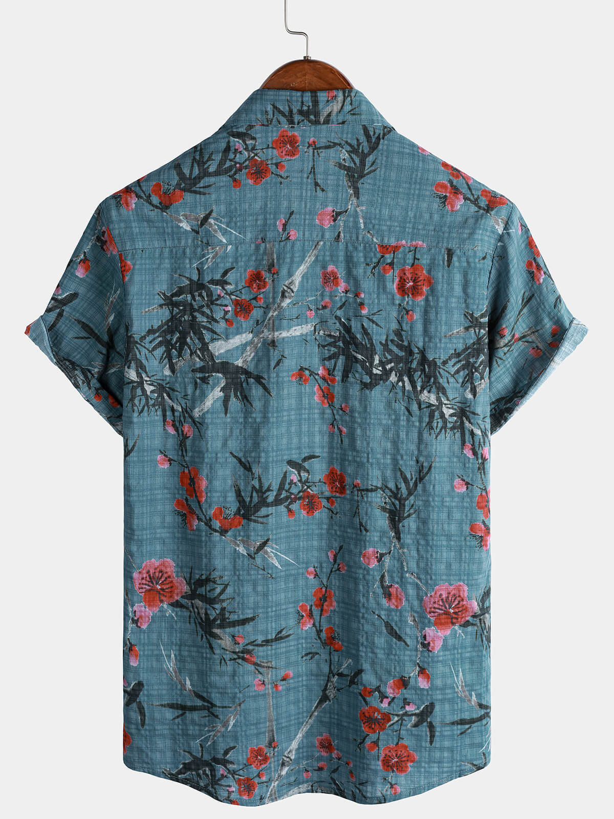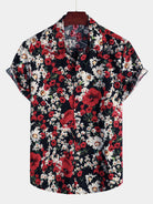 Men's Summer Rose Daisy Flower Print Casual Floral Short Sleeve Shirt