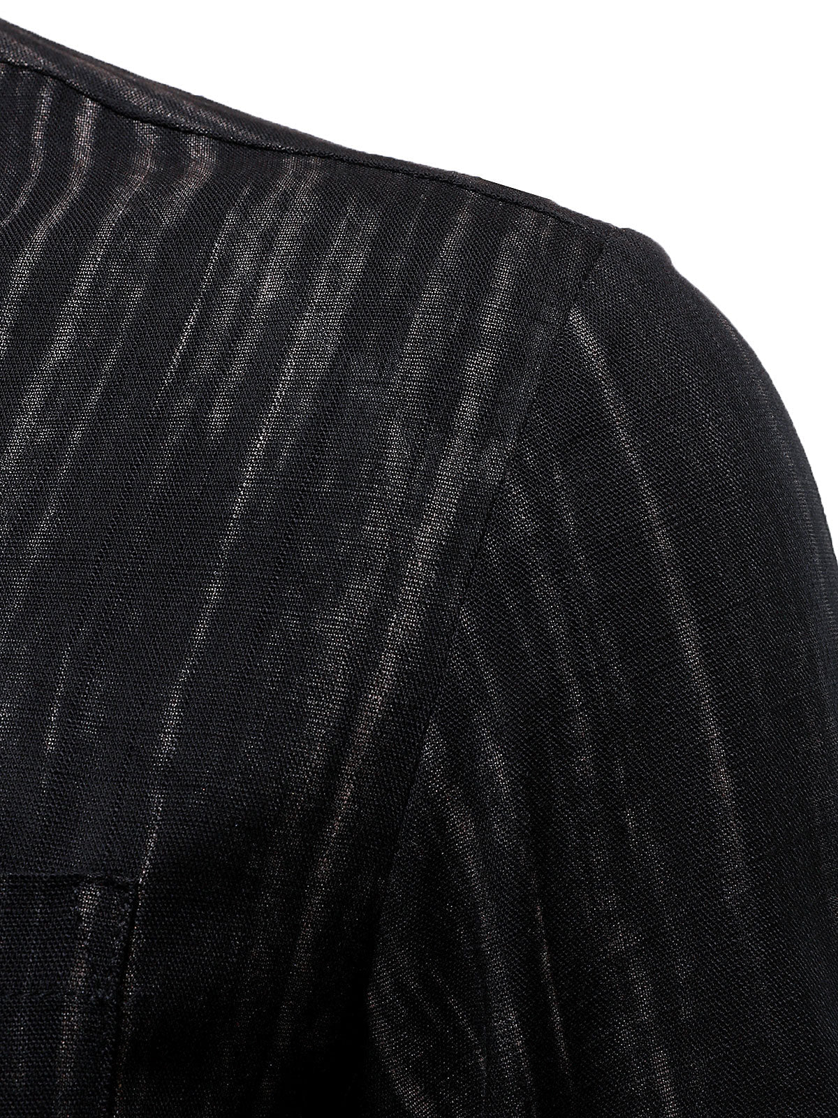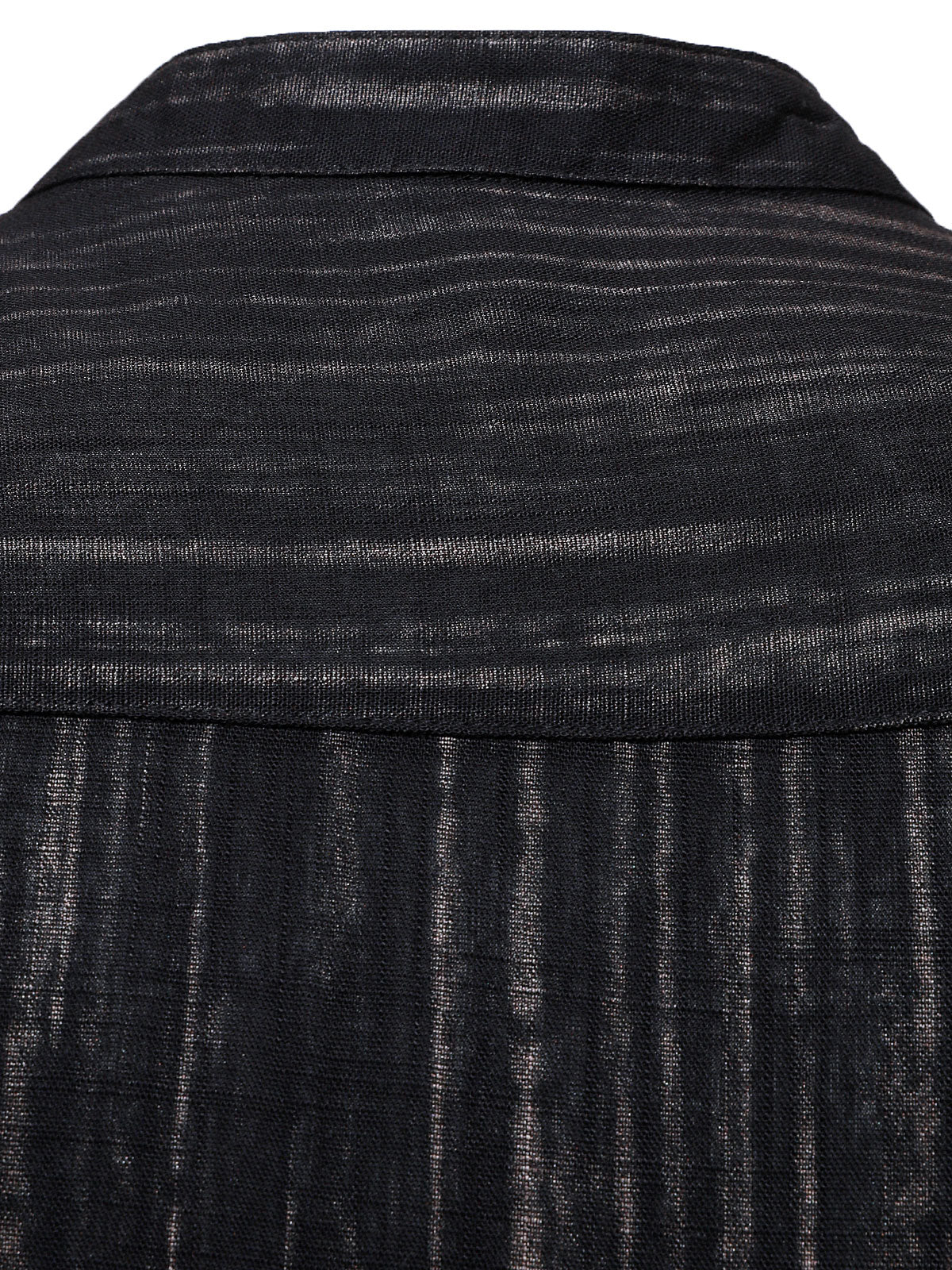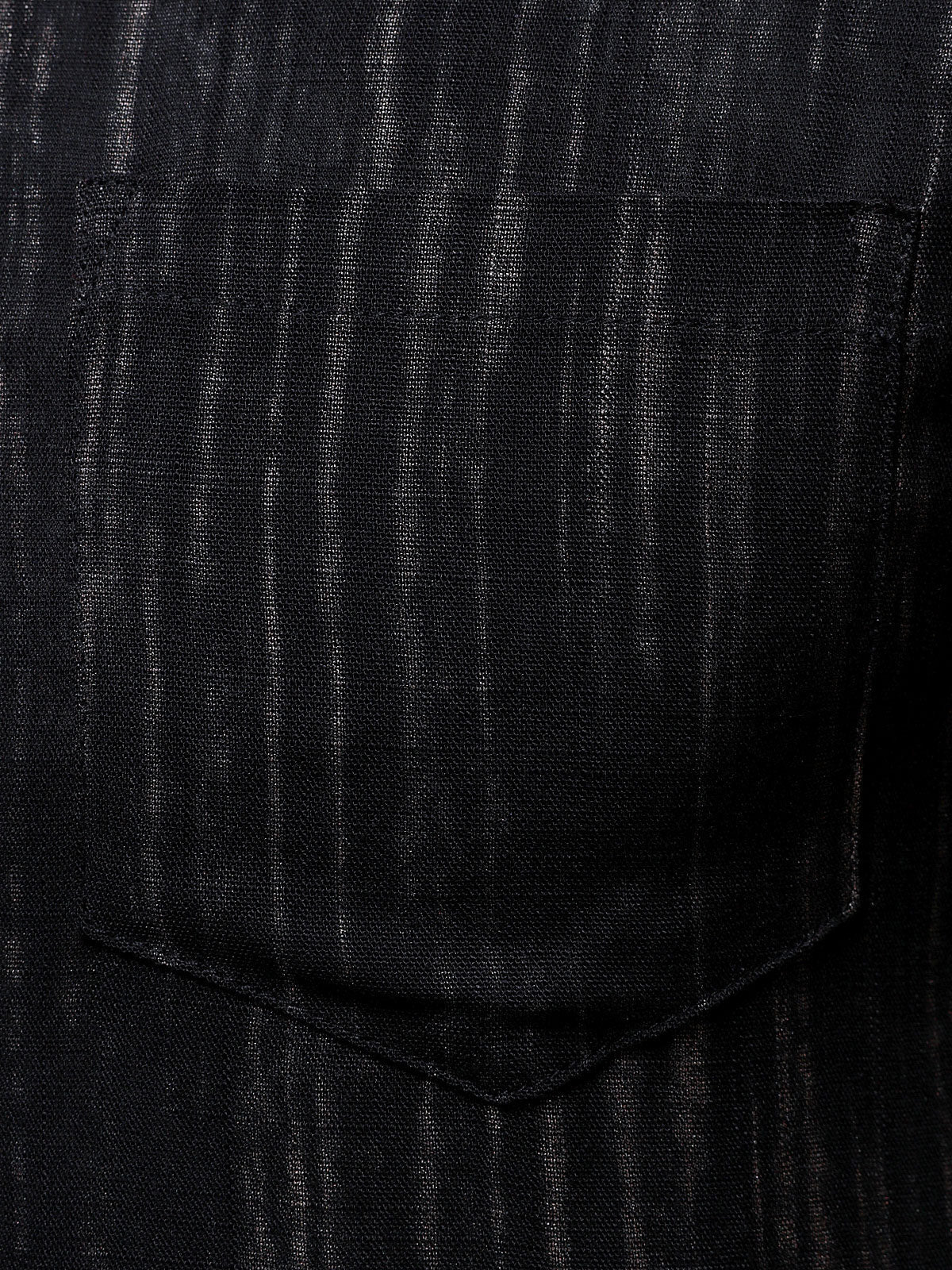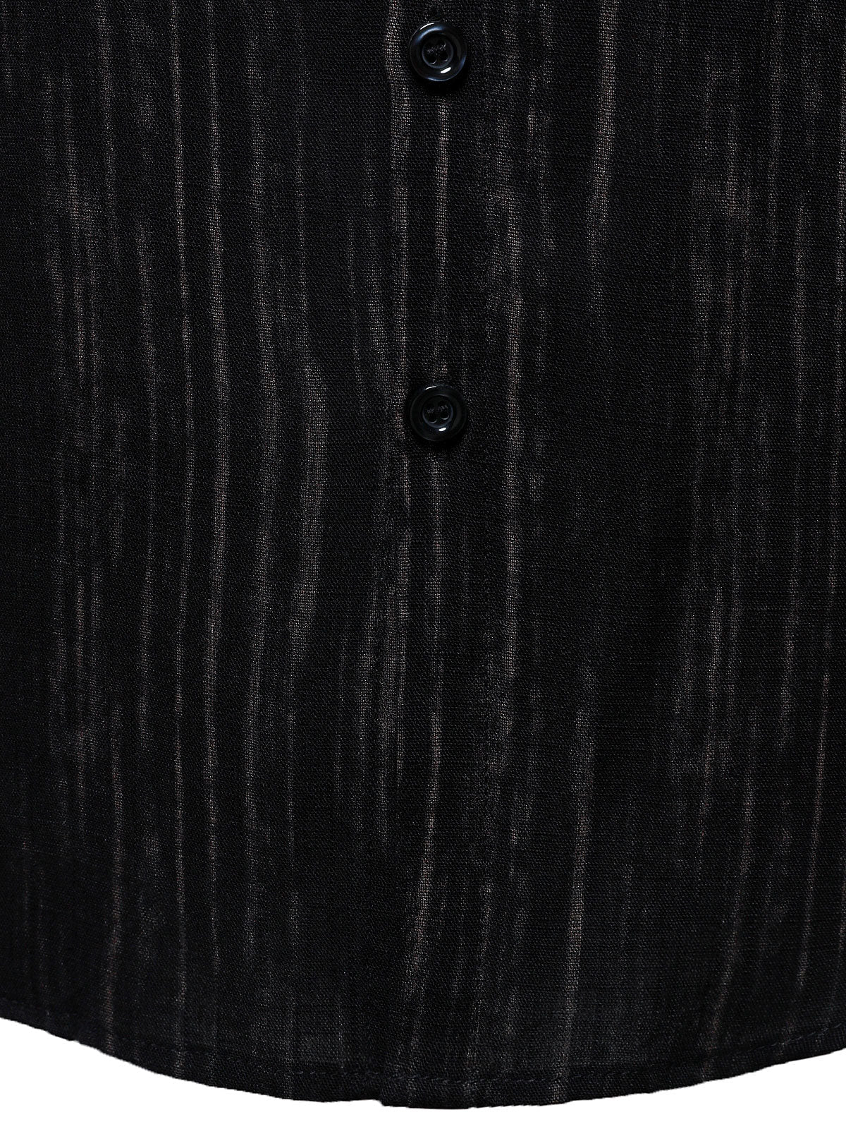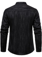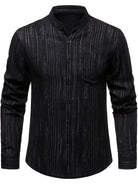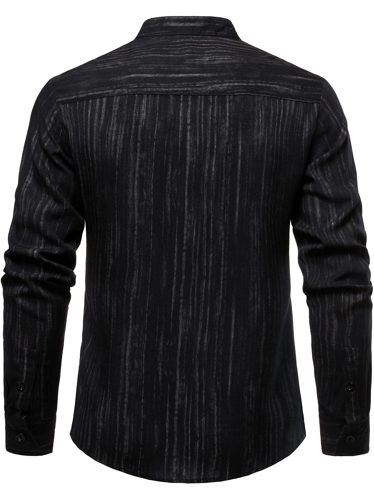 Men's Casual Breathable Pocket Long Sleeve Black Striped Shirt