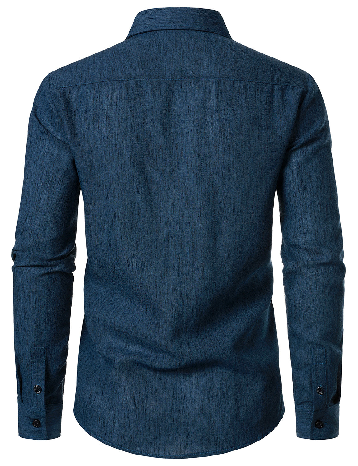 Men's Casual Button Navy Blue Long Sleeve Shirt