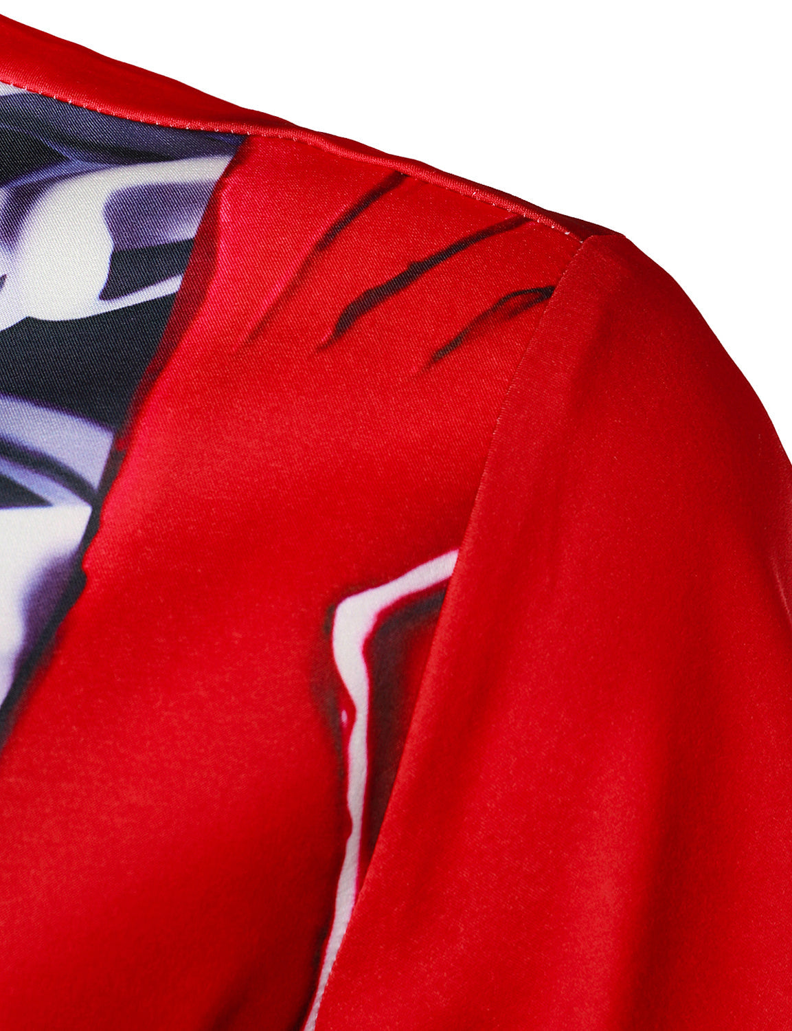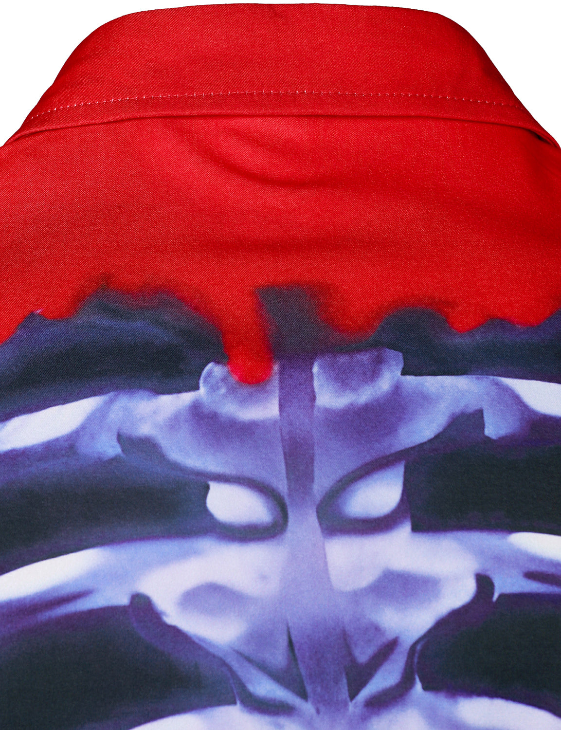 Men's Pirate Skeleton Costume Red Caribbean Cruise Themed Party Halloween Short Sleeve Shirt