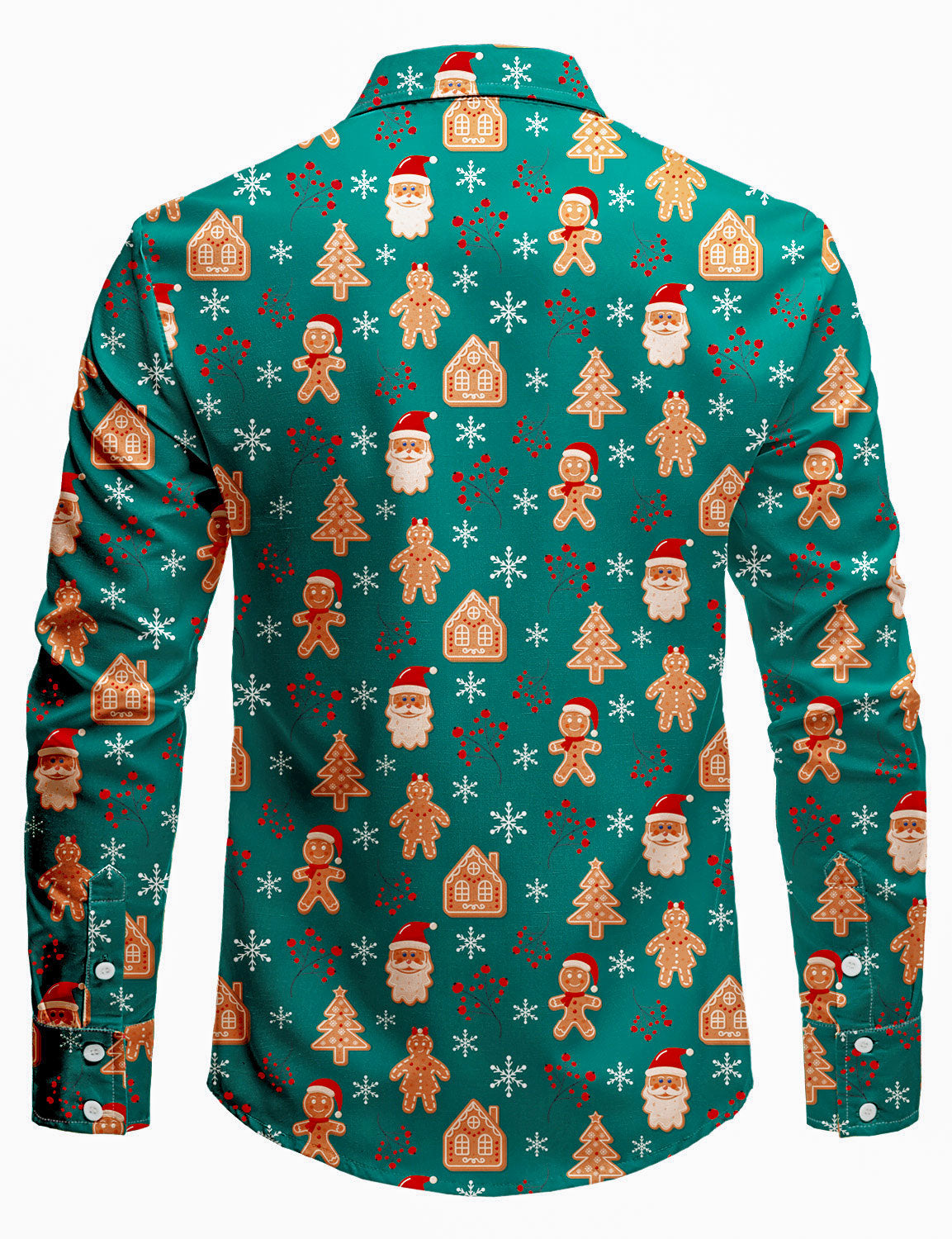 Men's Funny Christmas Cookie And Tree Print Holiday Long Sleeve Shirt