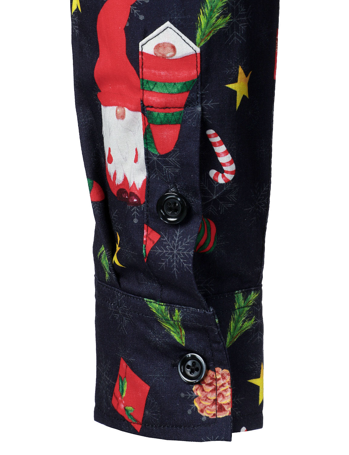Men's Christmas Funny Outfit Themed Top Vacation Disco Button Long Sleeve Dress Shirt