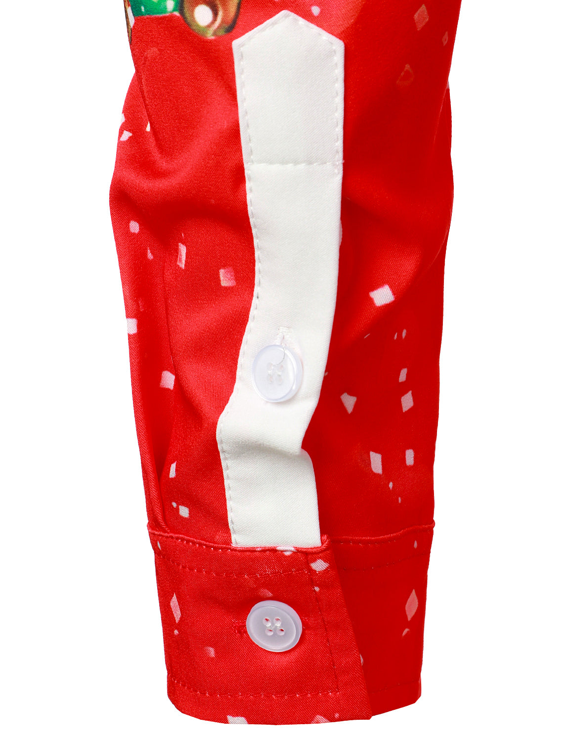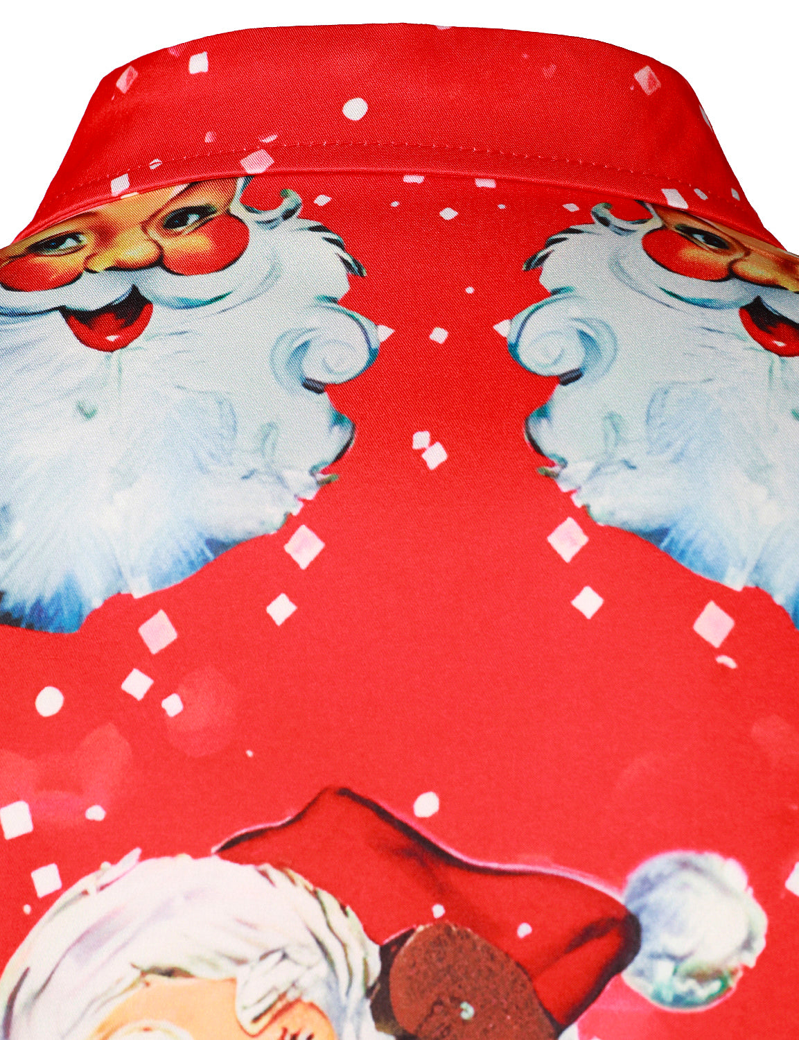 Men's Christmas Themed Santa Top Red Funny Outfit Holiday Button Long Sleeve Shirt