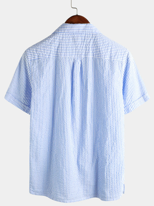 Men's Breathable Short Sleeve Pocket Blue Striped Shirt