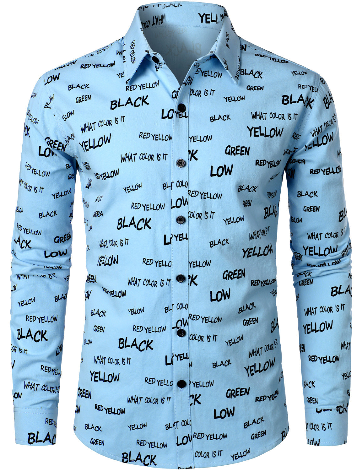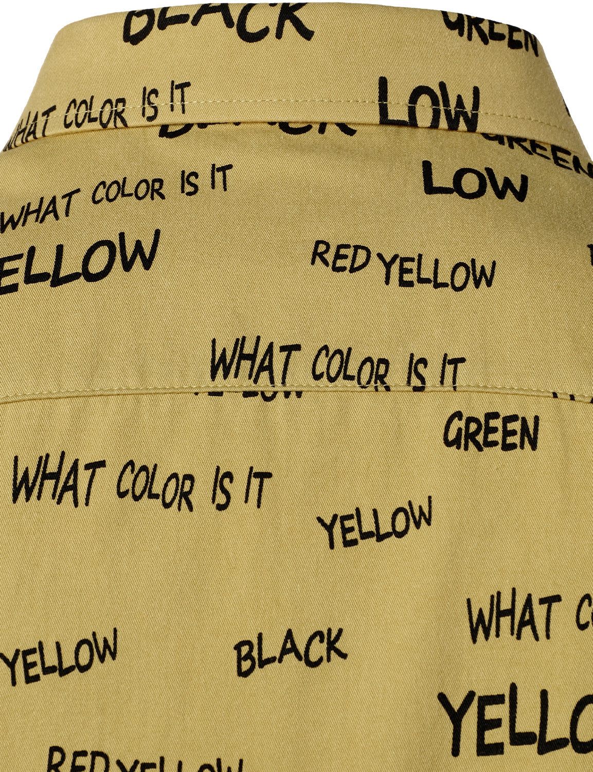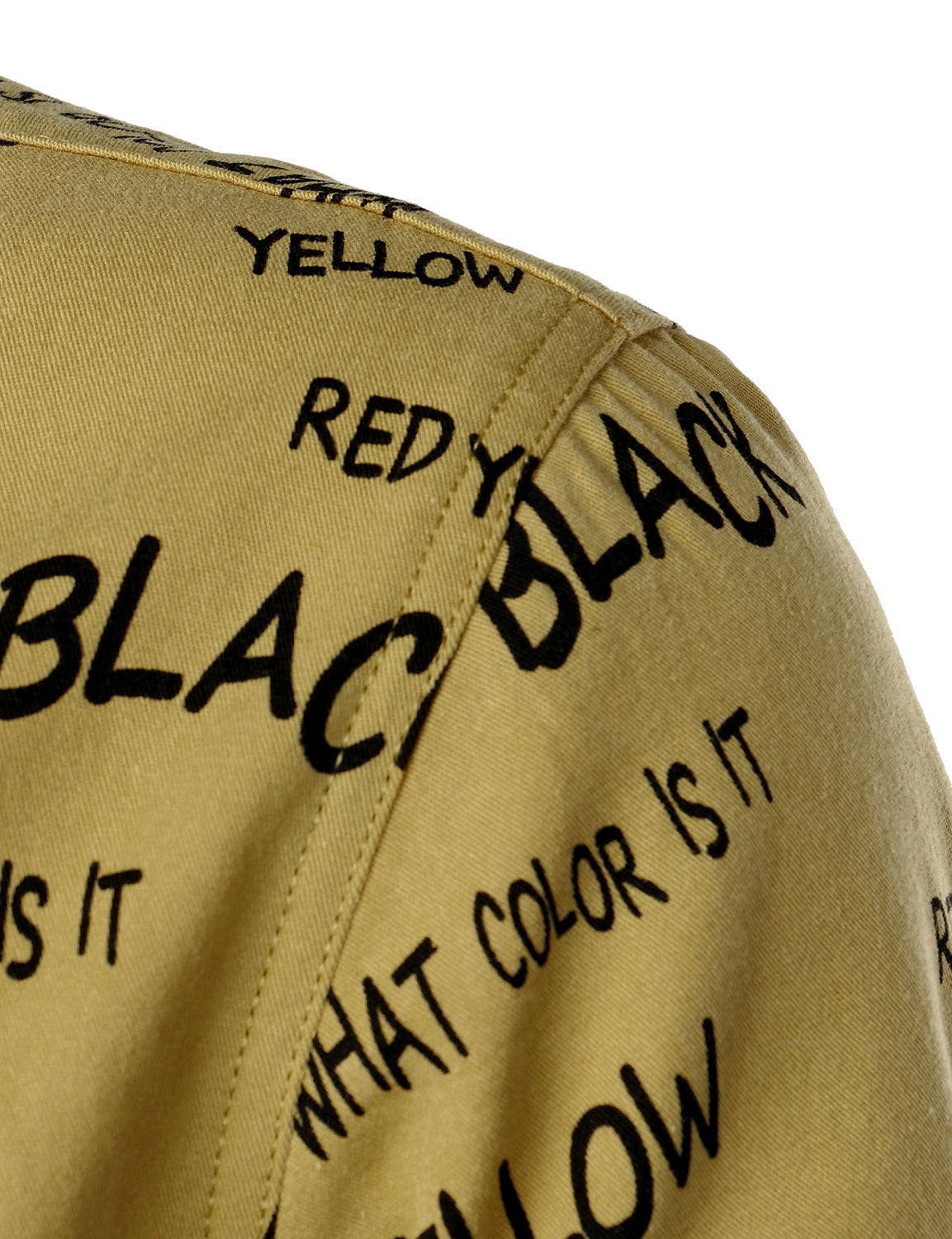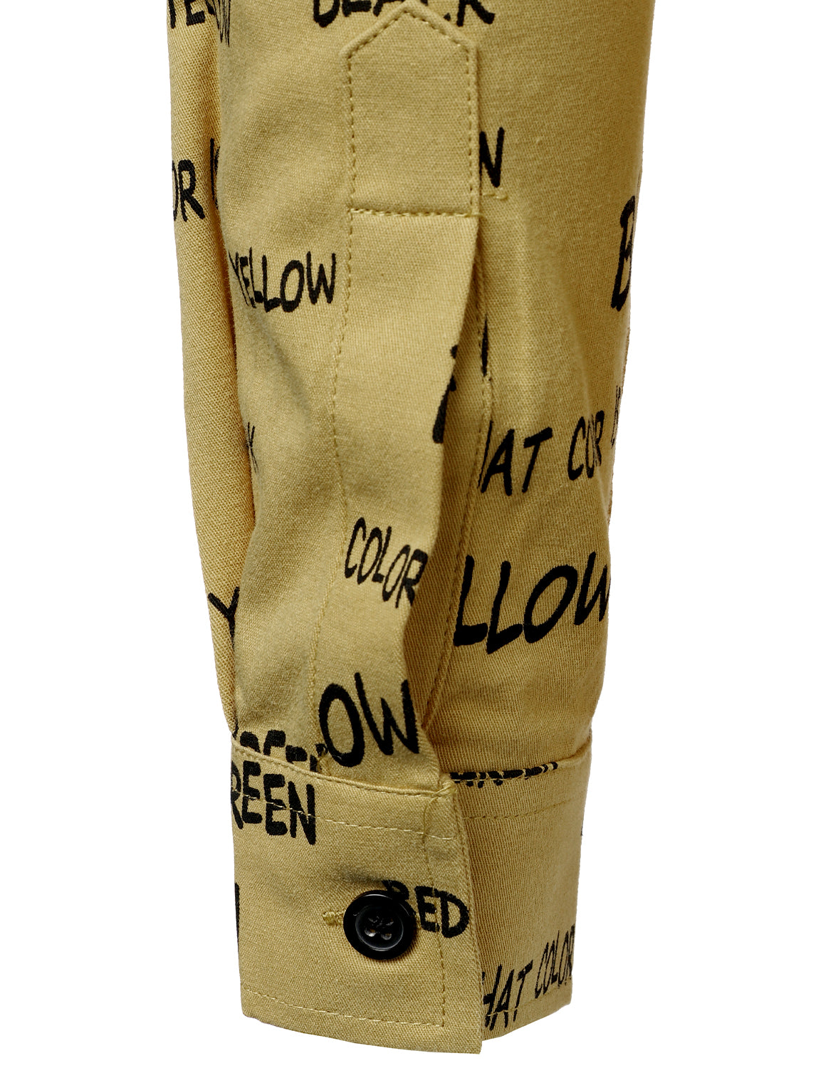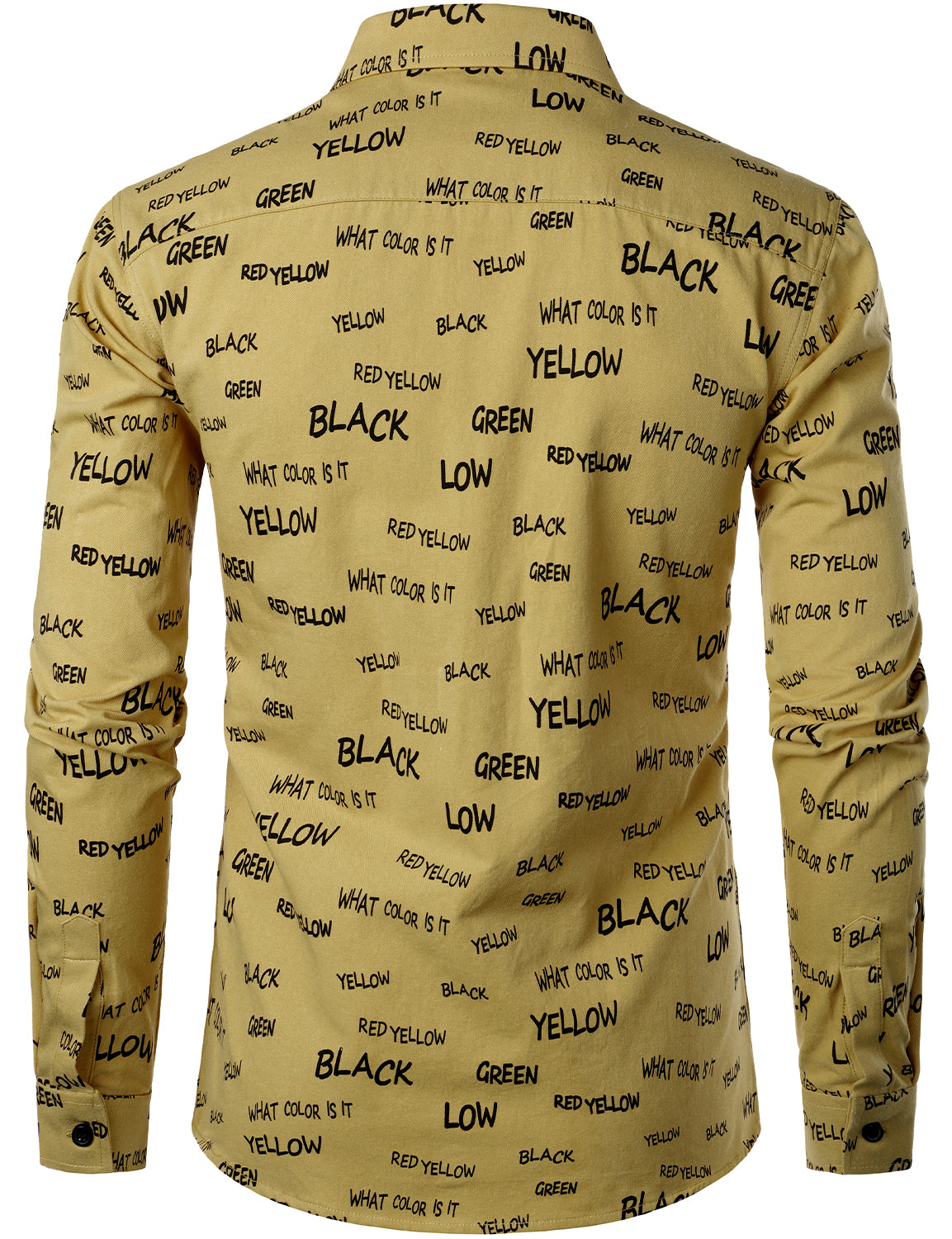 Men's Cotton Alphabet Letter Print Yellow Button Long Sleeve Shirt