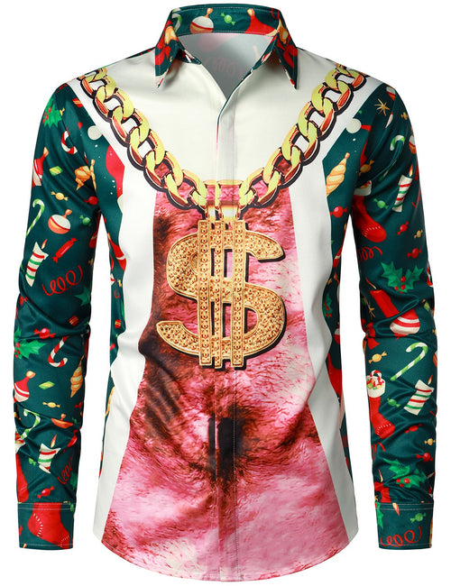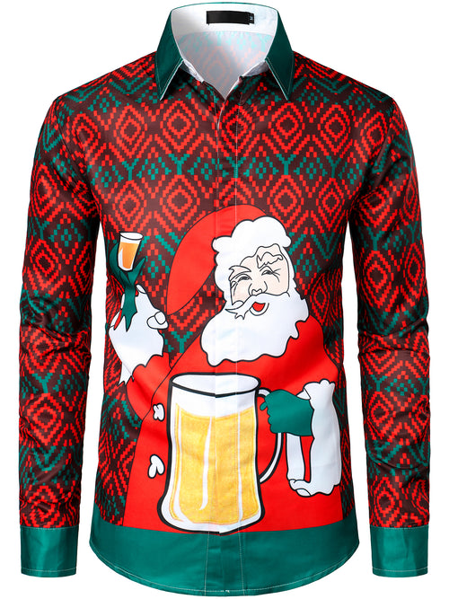 Men's Christmas Print Regular Fit Long Sleeve Shirt
