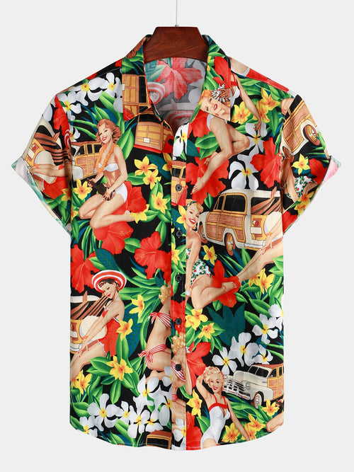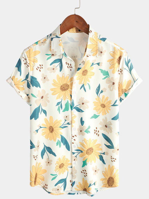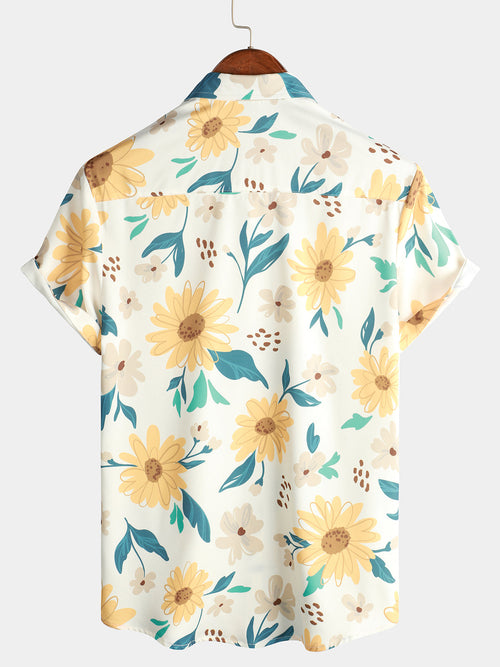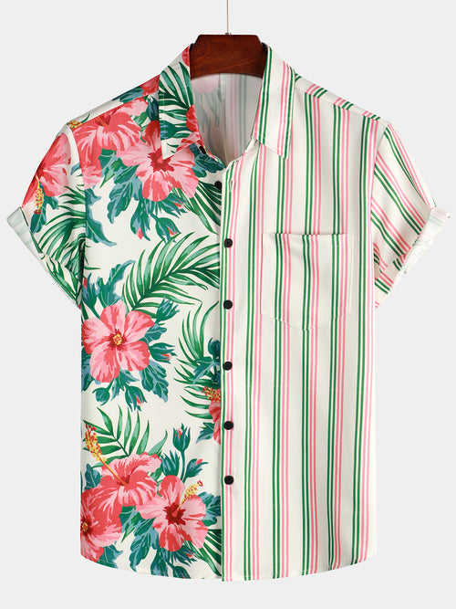 Men's Summer Cotton Floral Sleeveless Pocket Holiday Shirt
