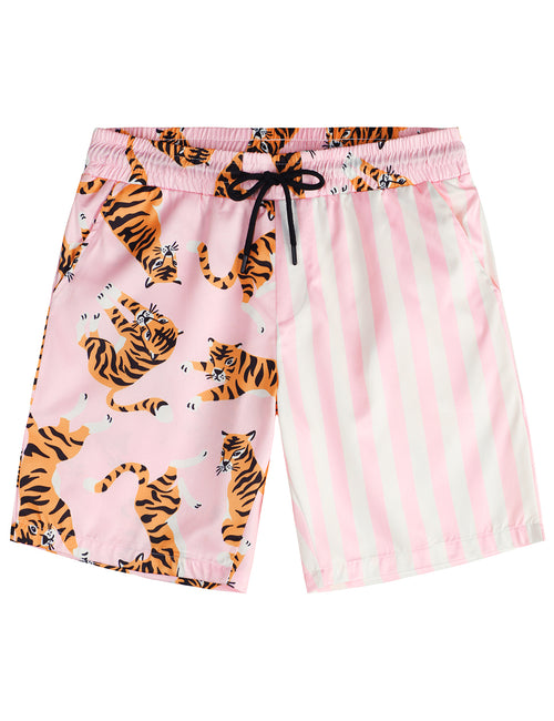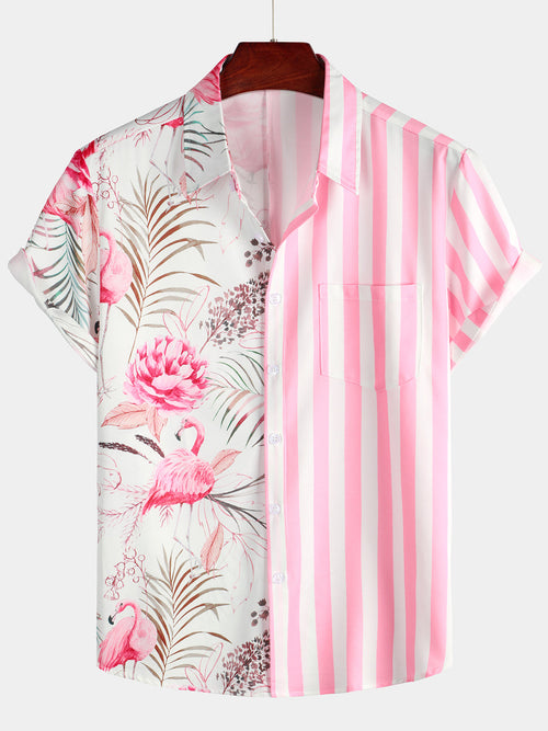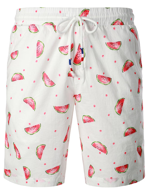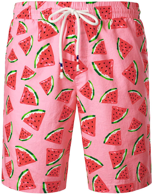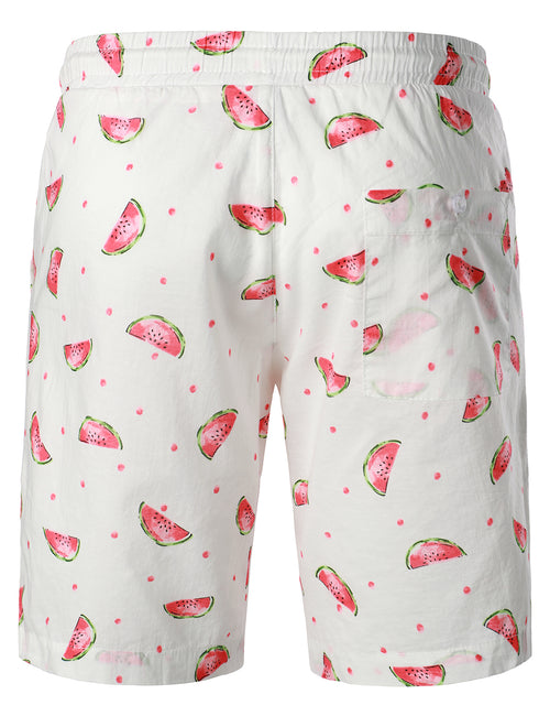 Men's Breathable Tropical Fruit Cotton Pink Watermelon Beach Hawaiian Aloha Summer Shorts