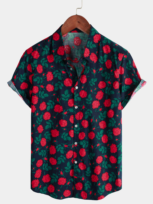 Men's Floral Print Holiday Flower Casual Short Sleeve Shirt
