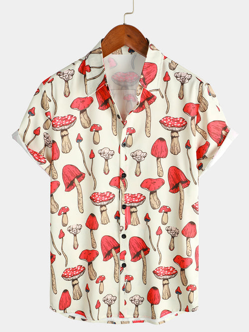 Men's Casual Button Up Holiday 70s Retro Floral Casual Short Sleeve Shirt