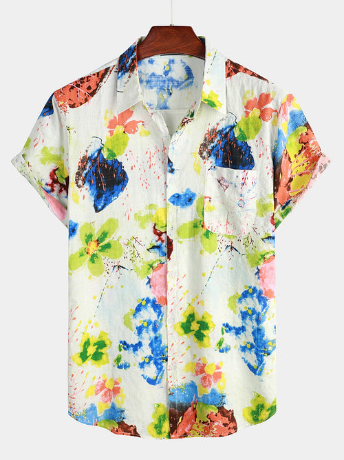 Men's Vintage Floral Cotton Button Up Short Sleeve Shirt