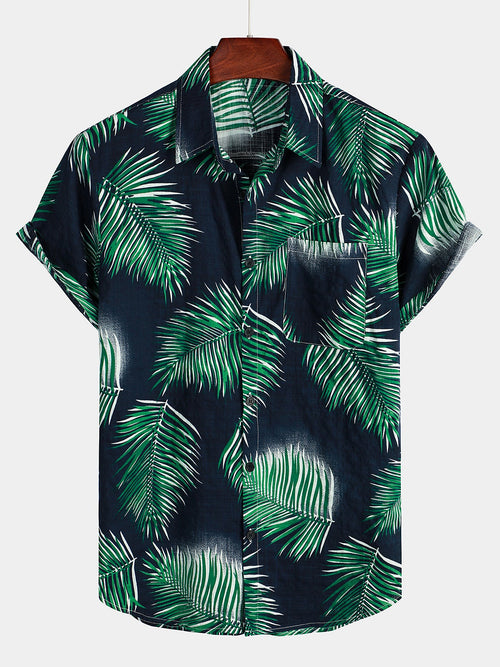 Men's Summer Tropical Coconut Tree Print Short Sleeve Shirt