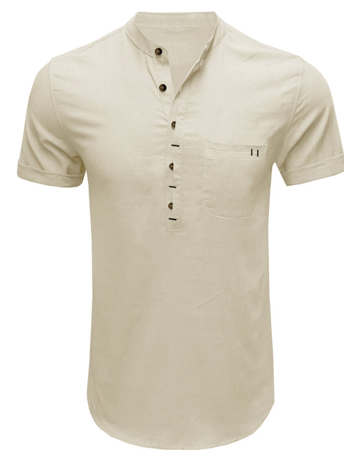 Men's Solid Color Linen Cotton Pocket Casual Short Sleeve Shirt