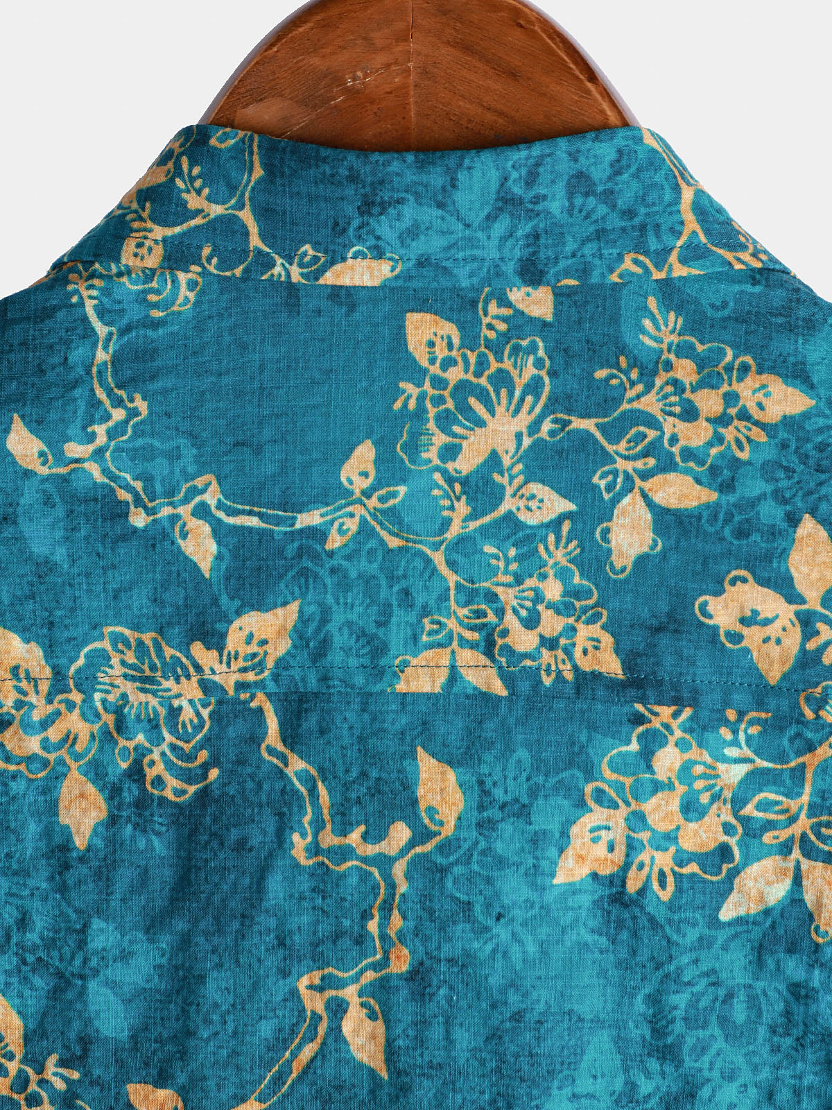Men's Blue Floral Print Breathable Summer Short Sleeve Hawaiian Shirt
