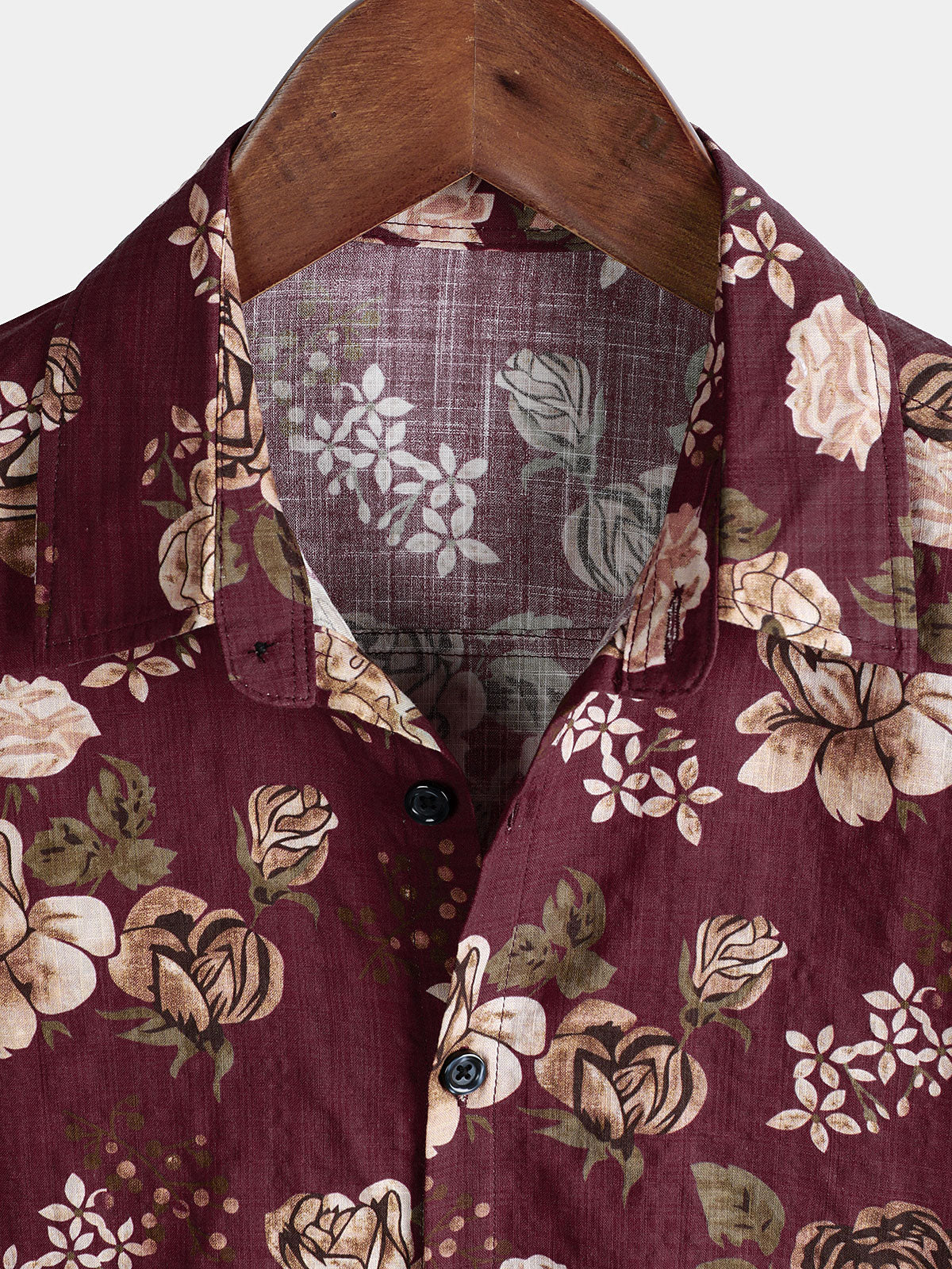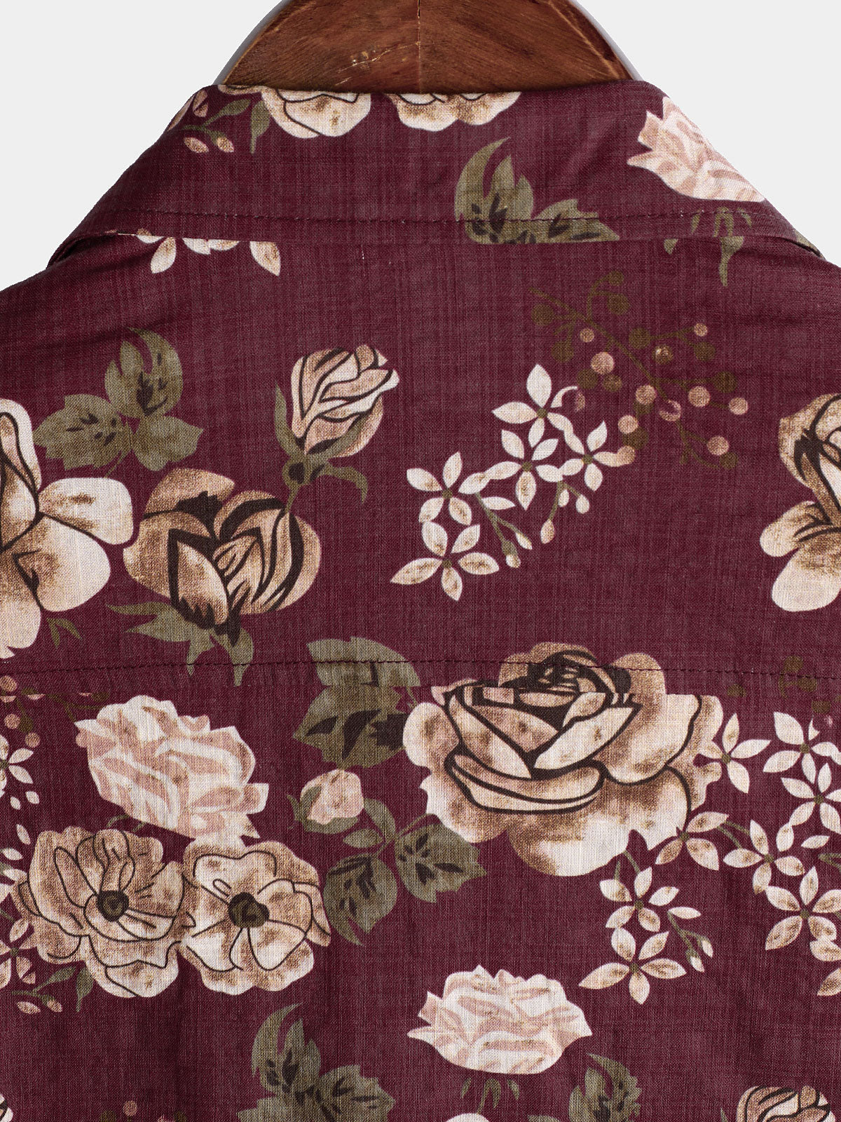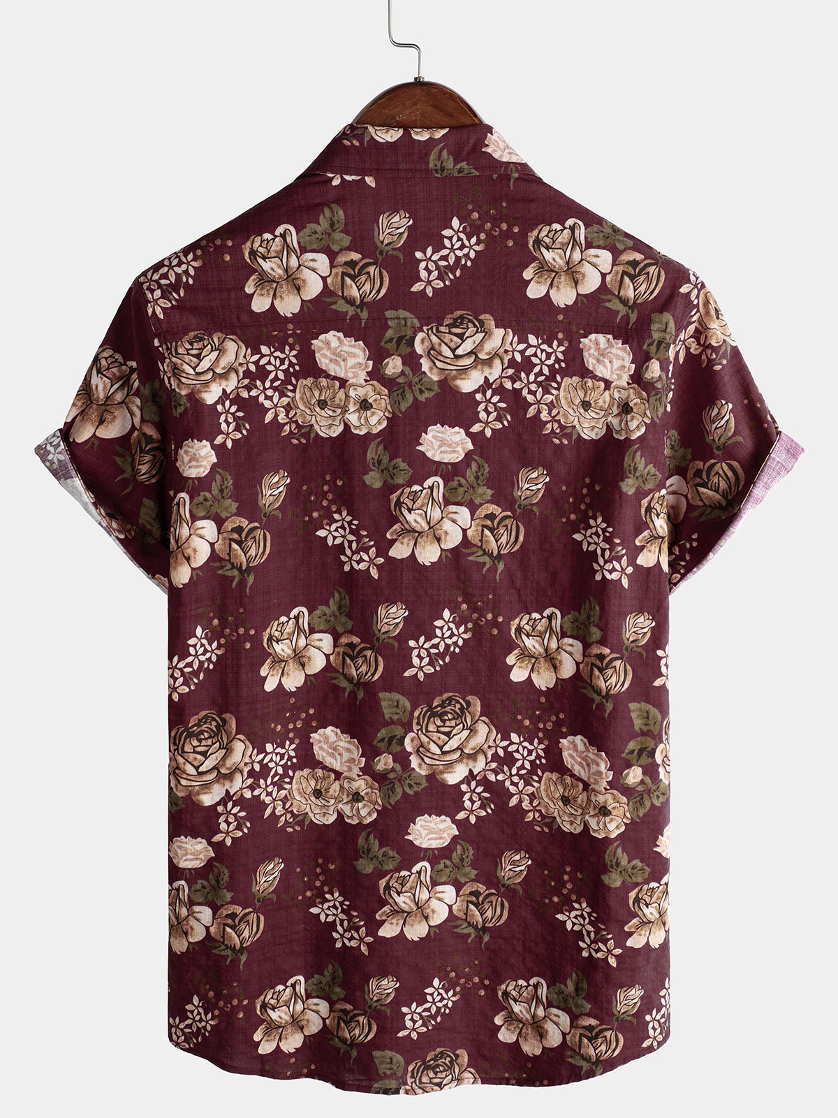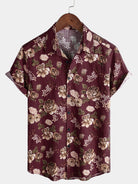 Men's Floral Retro Red Holiday Short Sleeve Shirt