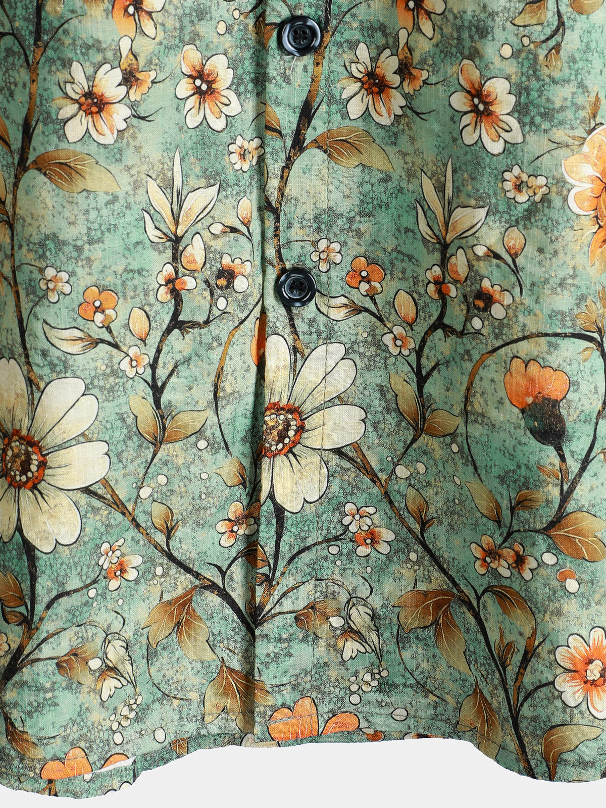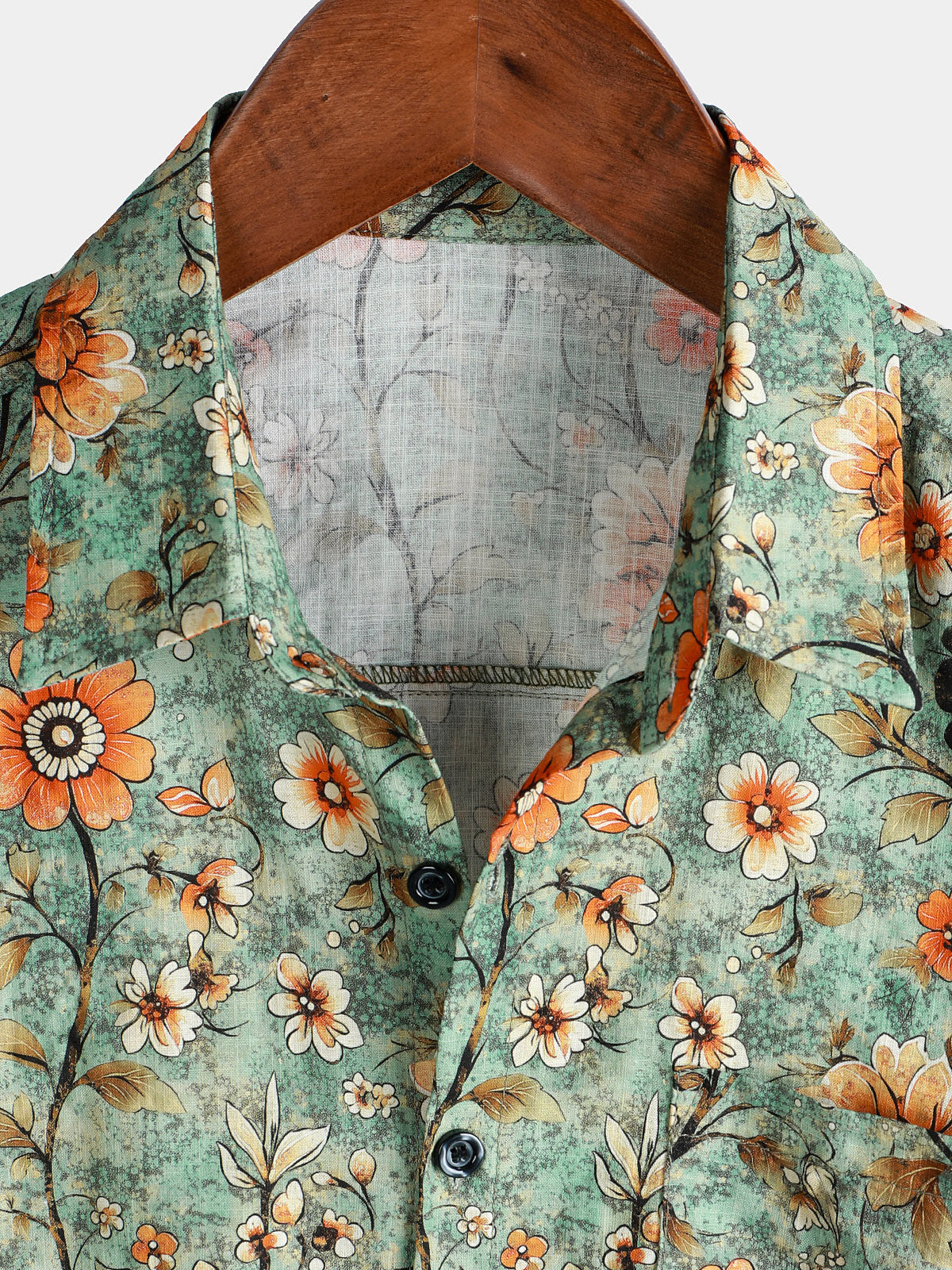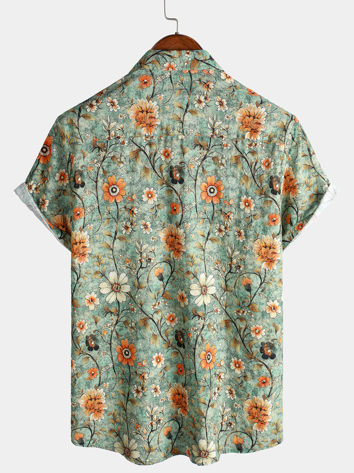 Men's Green Floral Print Summer Short Sleeve Hawaiian Shirt
