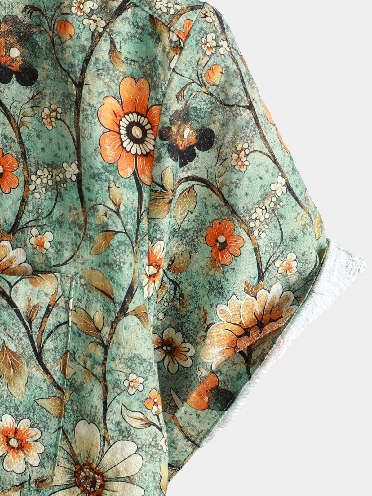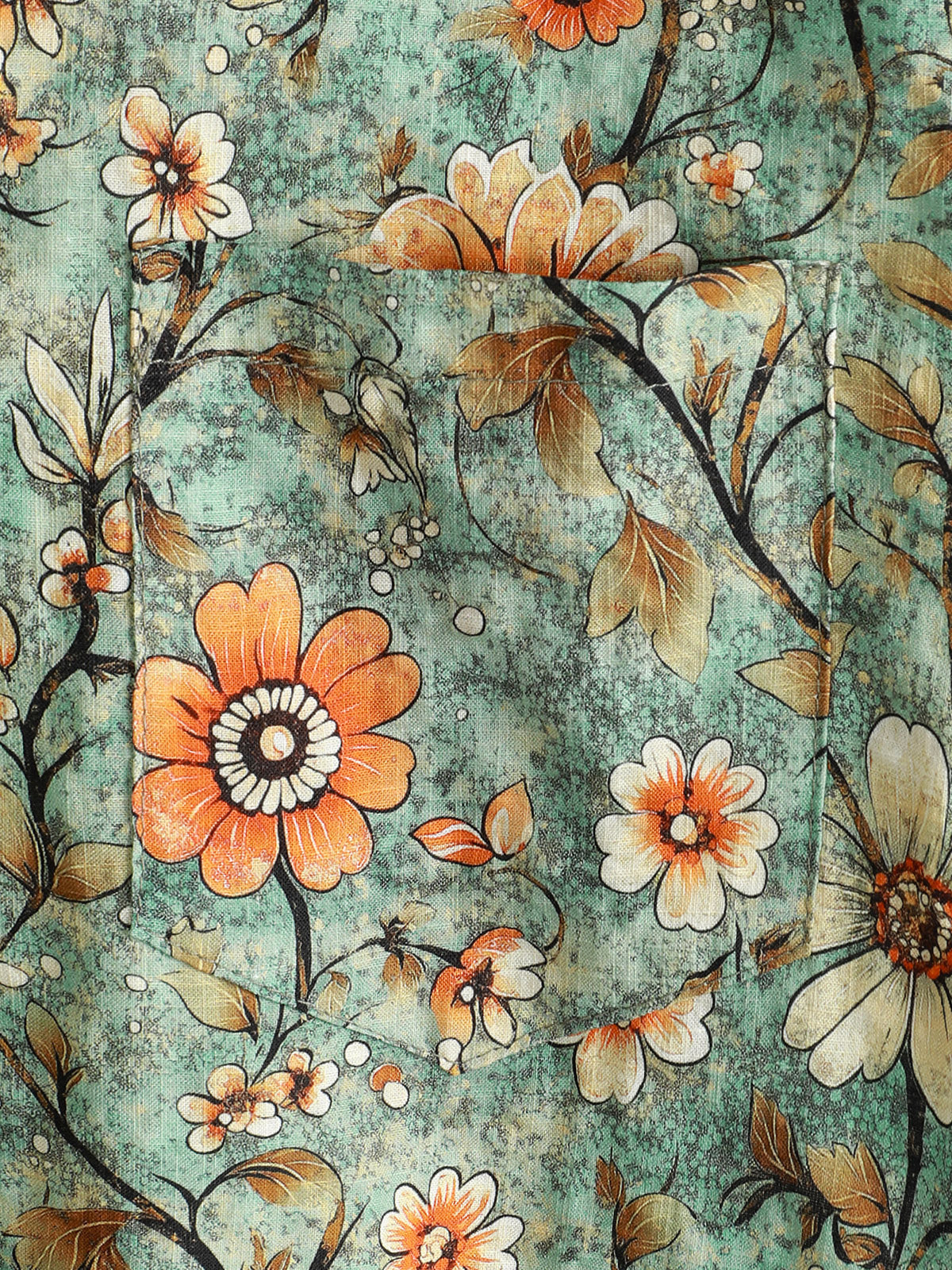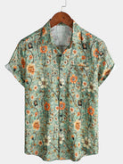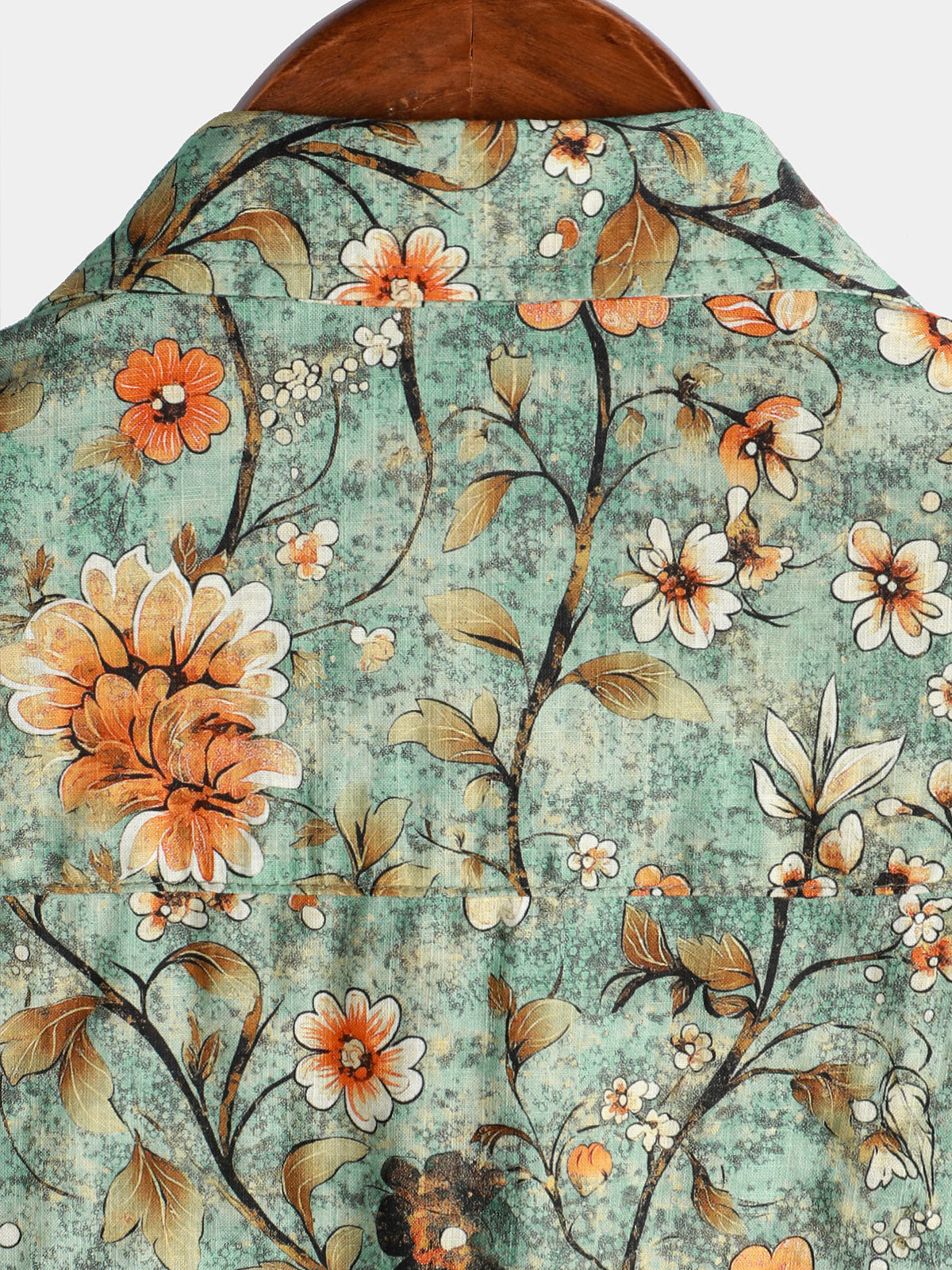 Men's Green Floral Print Summer Short Sleeve Hawaiian Shirt