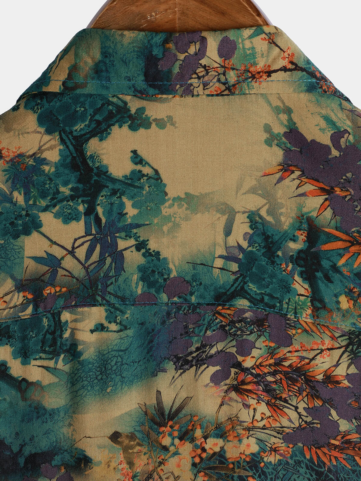 Men's Rayon Summer Retro Floral Short Sleeve Shirt