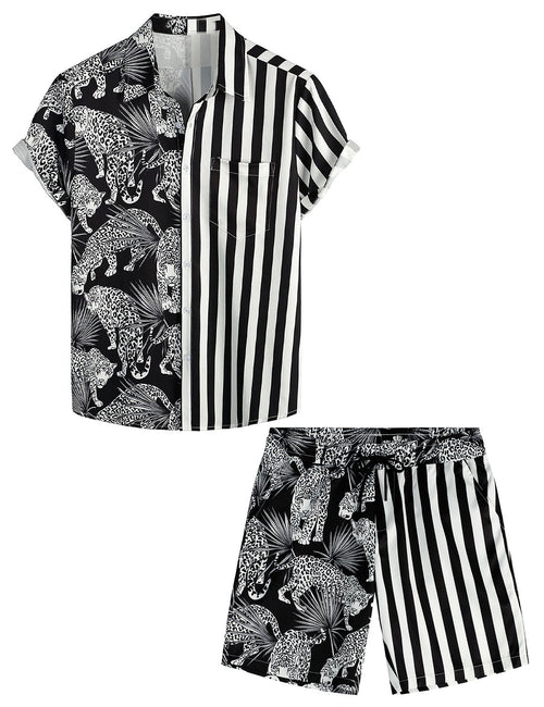 Men's Casual Leopard Hawaiian Shirt & Shorts Set