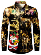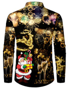 Men's Christmas Santa Print Xmas New Year Long Sleeve Holiday Shirt