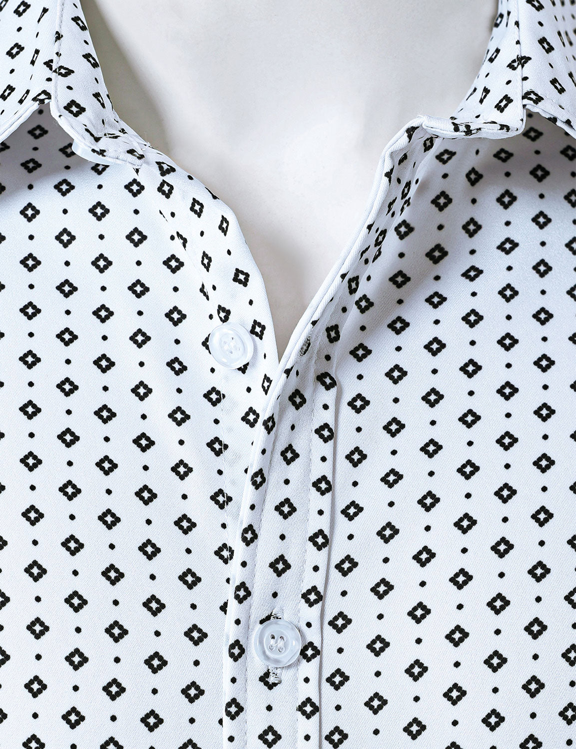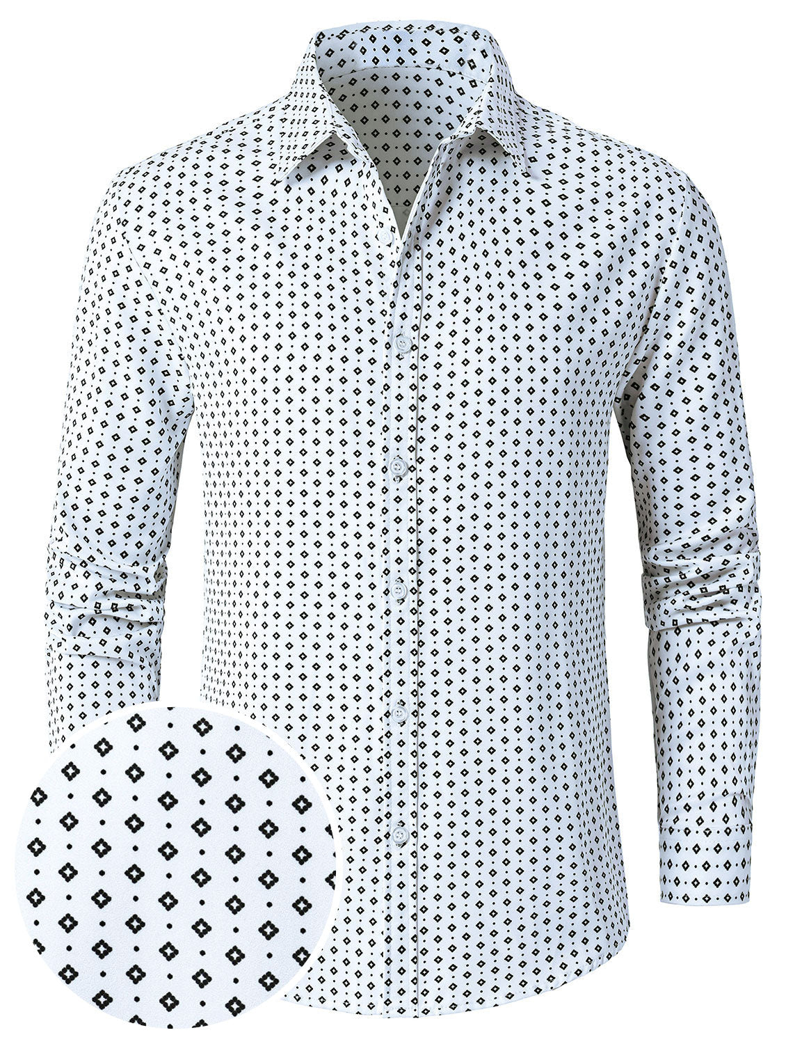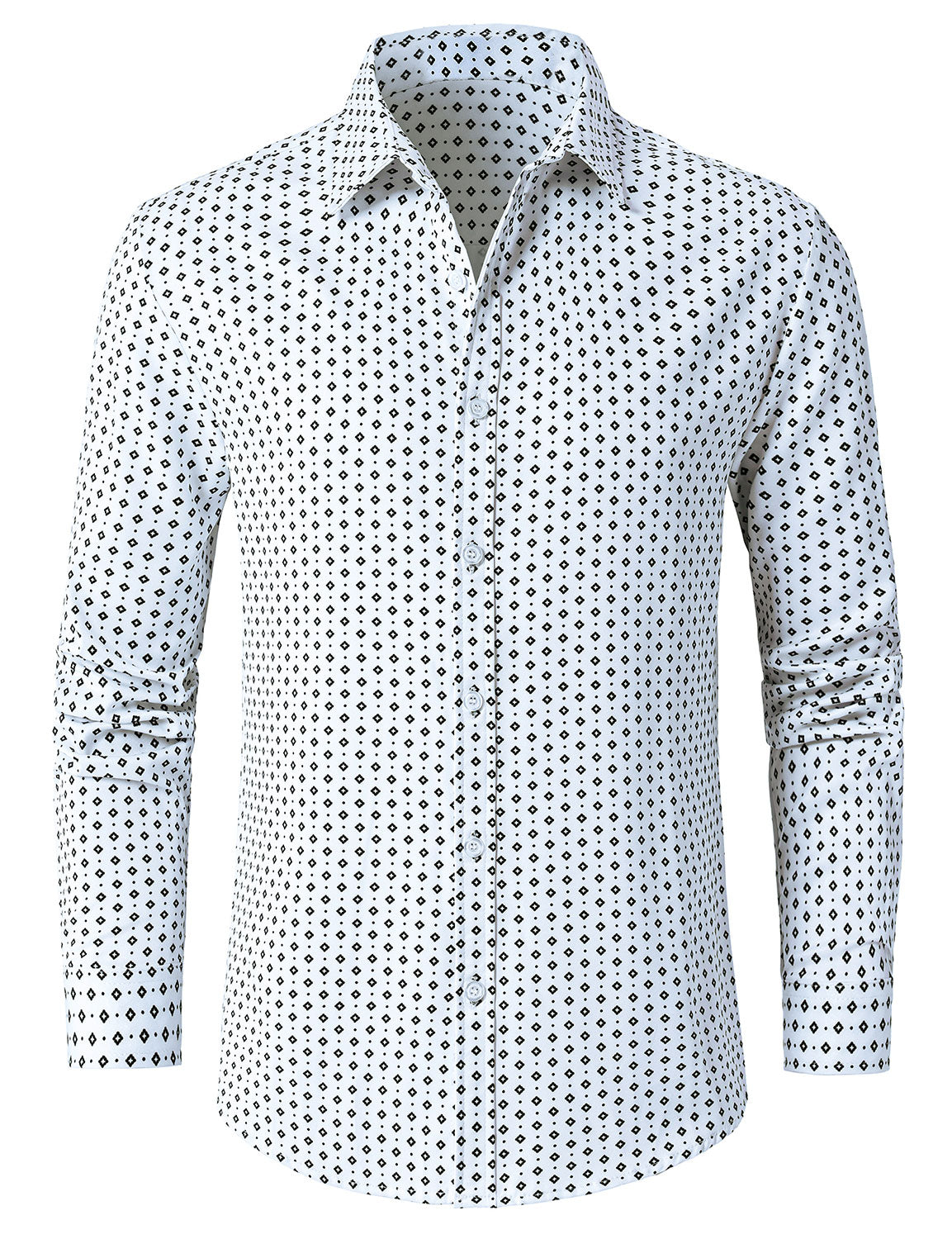 Men's White Retro Geometric Print Long Sleeve Shirt