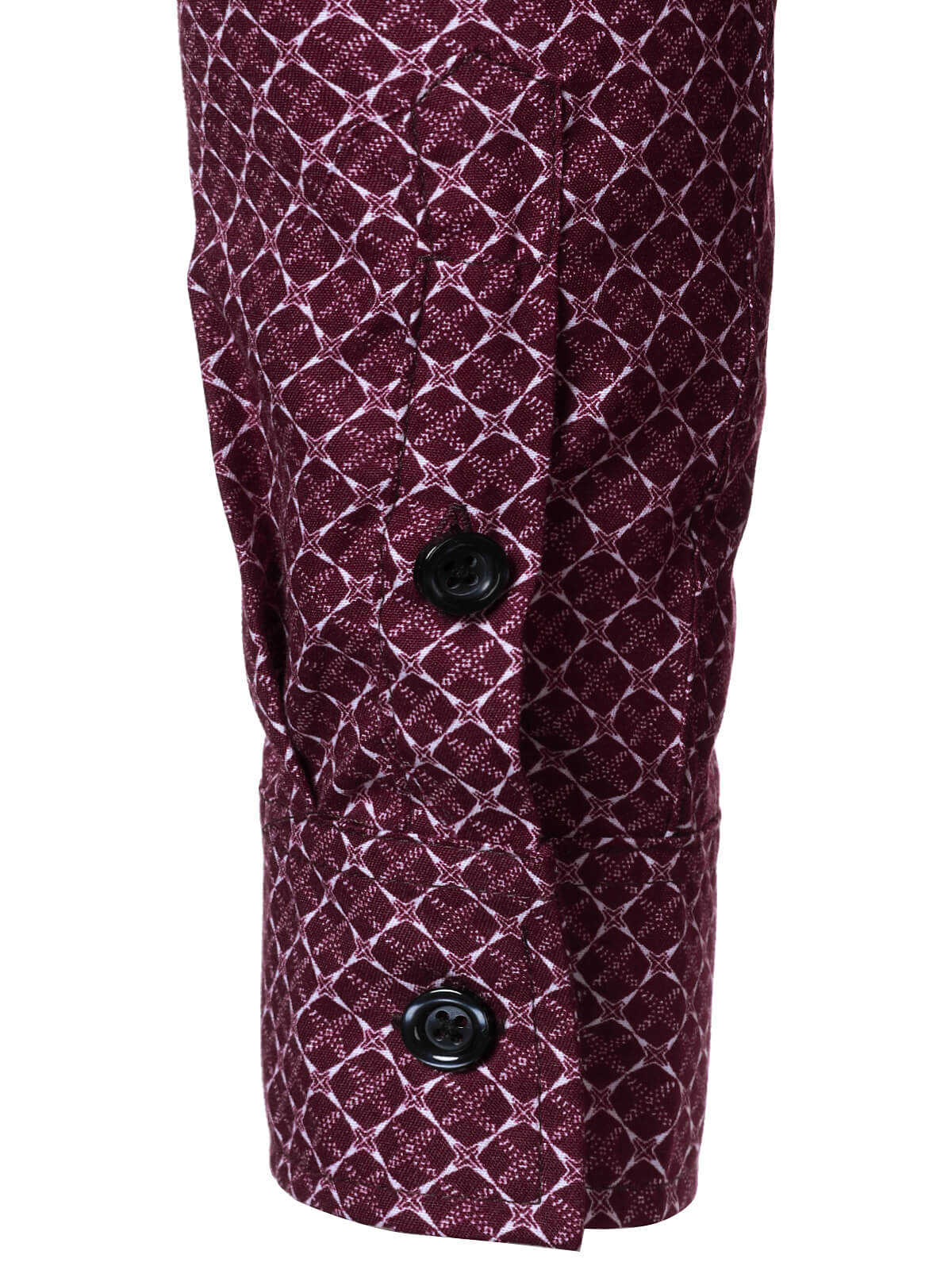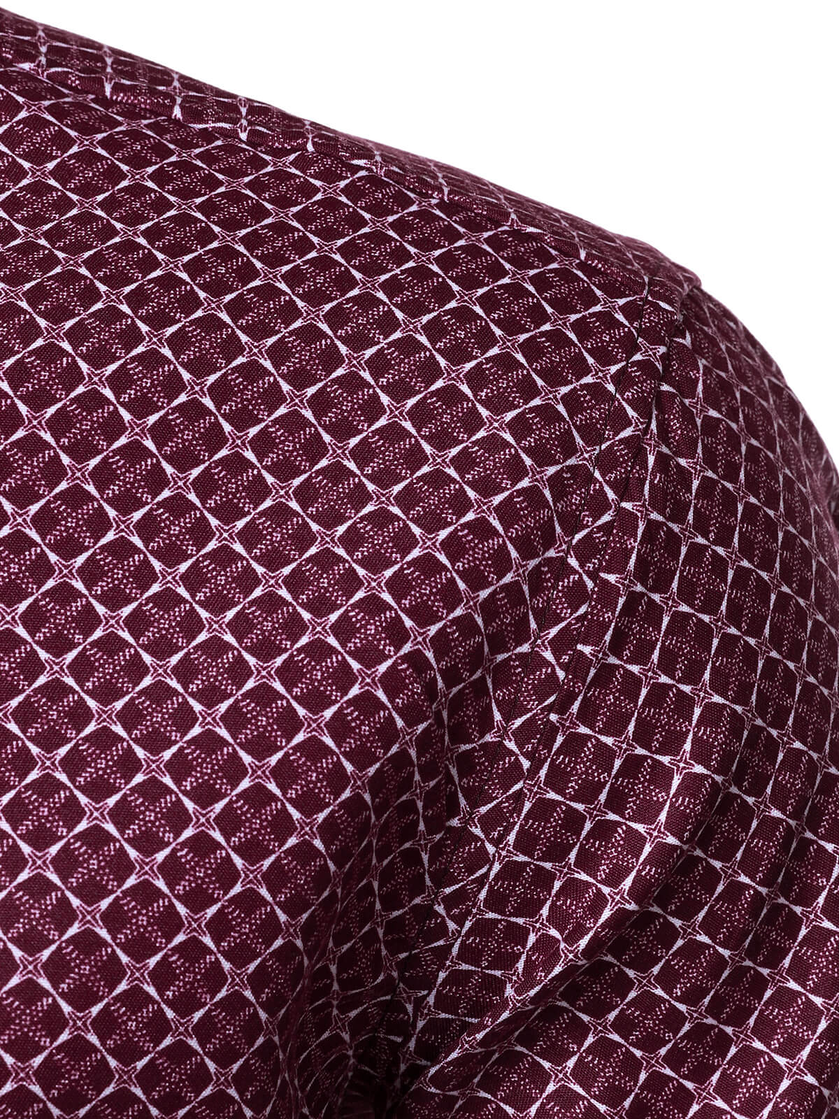 Men's Geometric Print Red Long Sleeve Dress Shirt