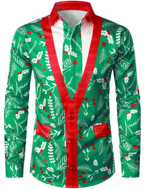 Men's Christmas Funny Outfit Themed Top Vacation Disco Button Long Sleeve Dress Shirt