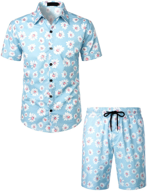Men's Green Casual Sailboat Flat Waist Hawaiian Shorts Summer Beach Boardshorts